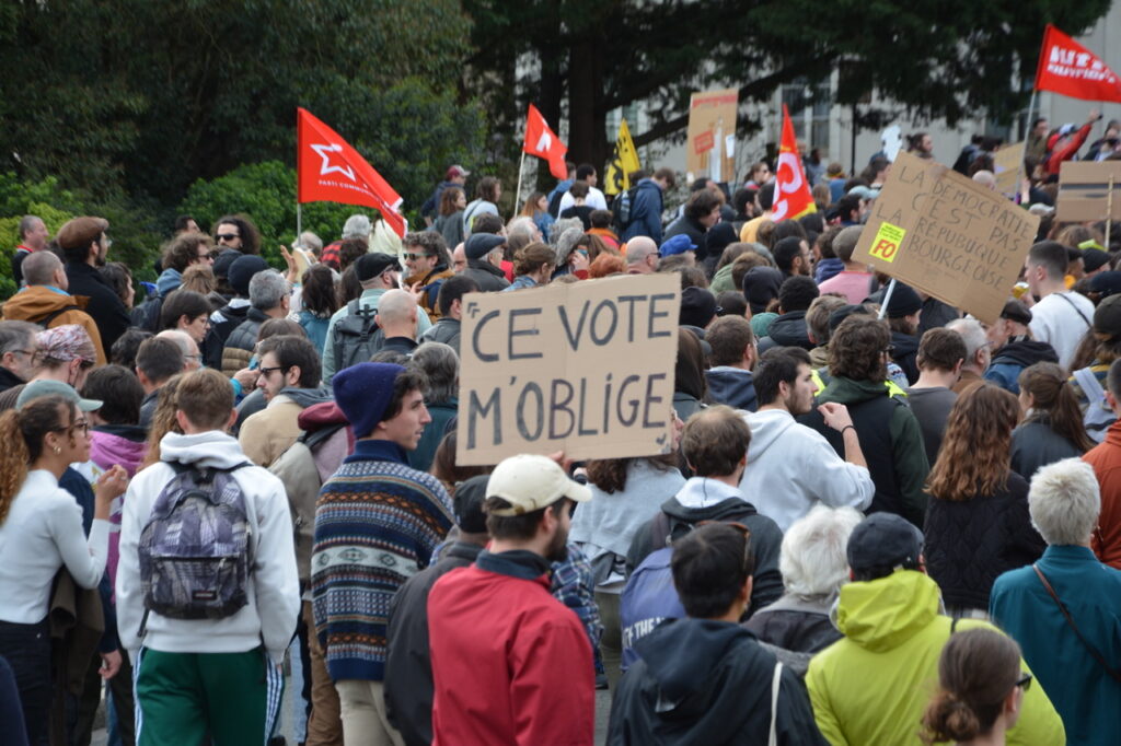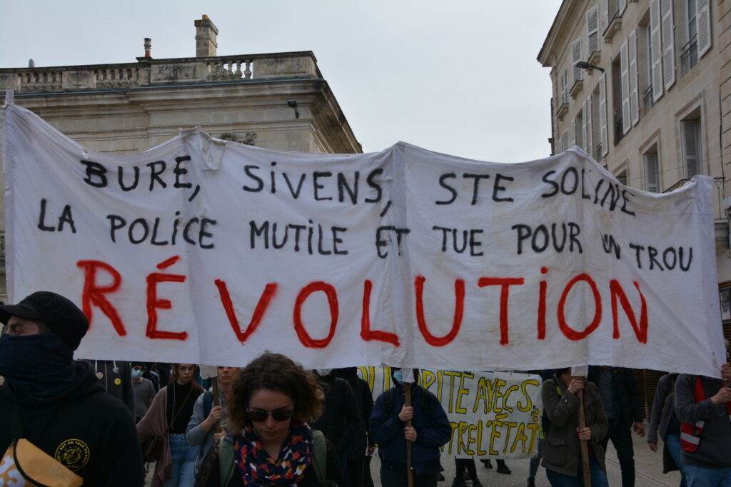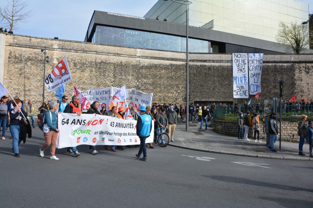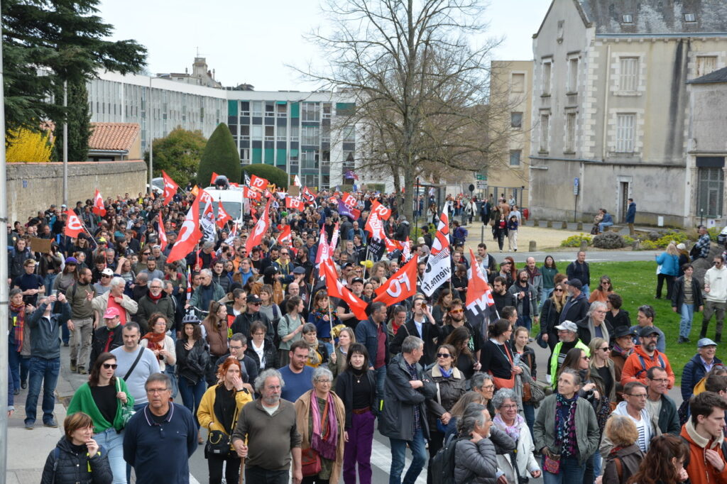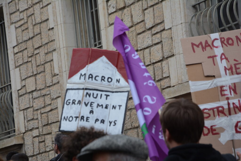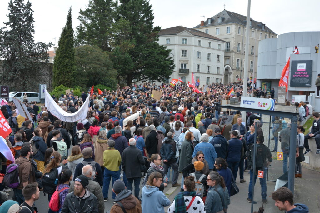 Long cortège et remontée dynamique de la rue Jean Jaurès, passage par la préfecture et un peu de nervosité du côté des FDO quand nous sommes passés devant… mais pas de difficultés particulières : comme quoi. A partir du viaduc L. Blum, la police nous a accompagné en prévision d’une action à la gare comme cela s’est passé un peu partout depuis quelques jours ? Retour à la Porte de Paris par le boulevard de la gare… on commence à connaître le trajet… Près de 500 personnes sont restées sur place un long moment… bien des choses à construire pour la suite…