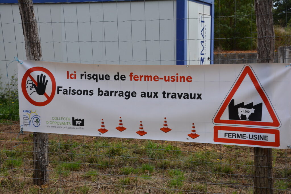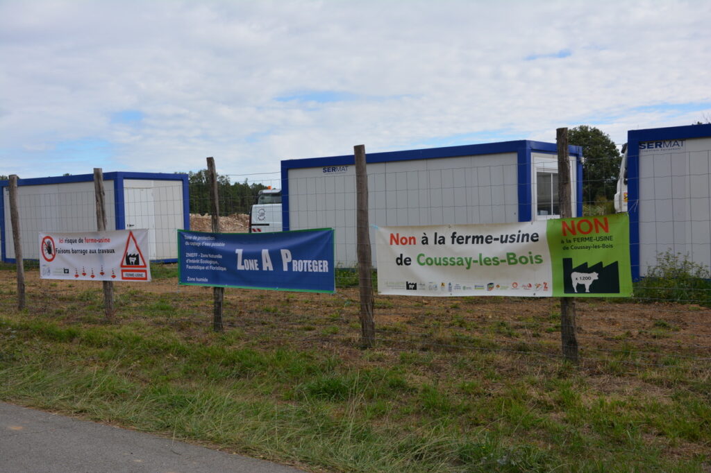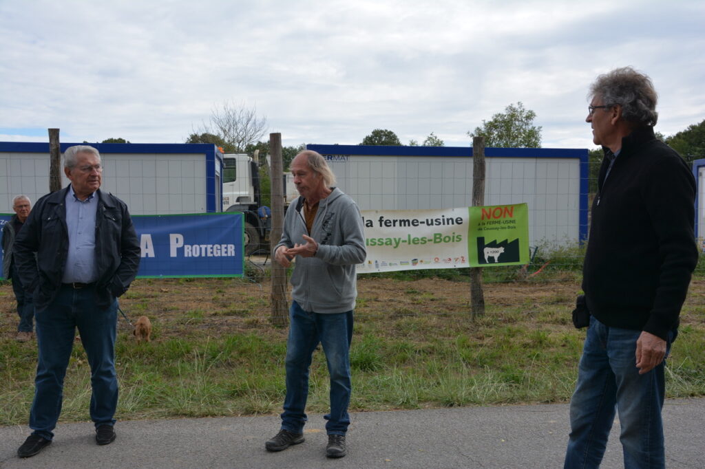 Nouvelle journée de mobilisation (avec pique-nique sur place) contre la ferme-usine de Coussay les Bois. Une trentaine de personnes étaient présentes ce lundi 26 septembre à 11 h sur le site où les travaux de terrassement vont bon train. Les camions rentrent et sortent du site amenant des gravats pour constituer le socle des 3 bâtiments, qui seront recouverts de panneaux solaires pour gagner un peu plus d’argent…