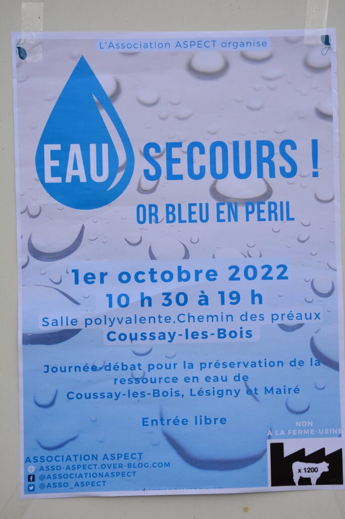 Rendez-vous samedi 1er octobre à Coussay les Bois pour la journée-débat « Eau secours ! Or bleu en péril » .