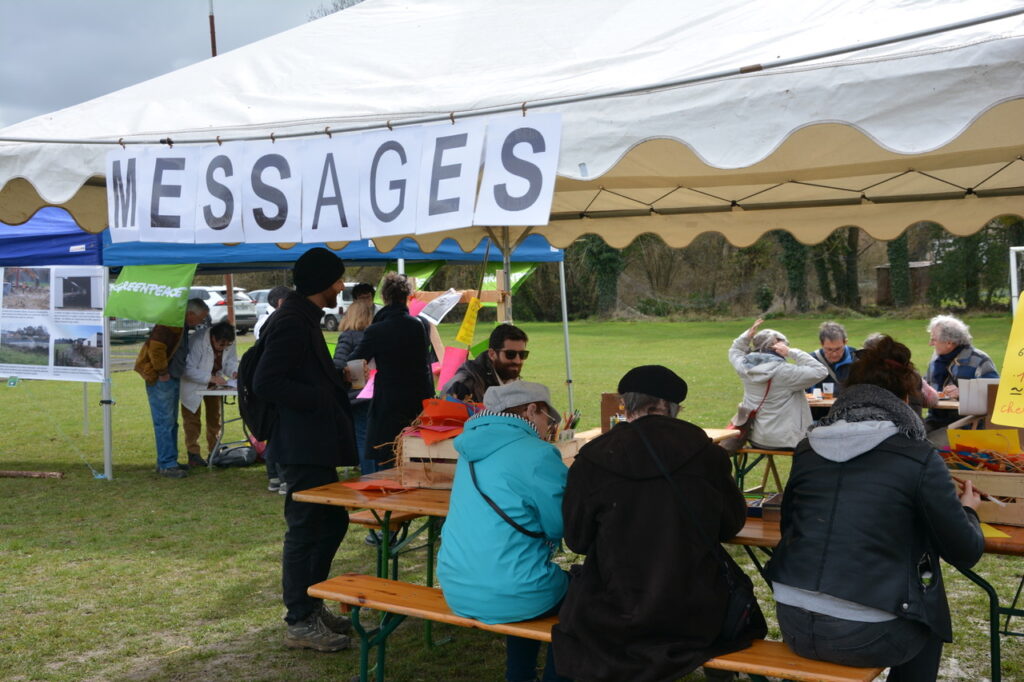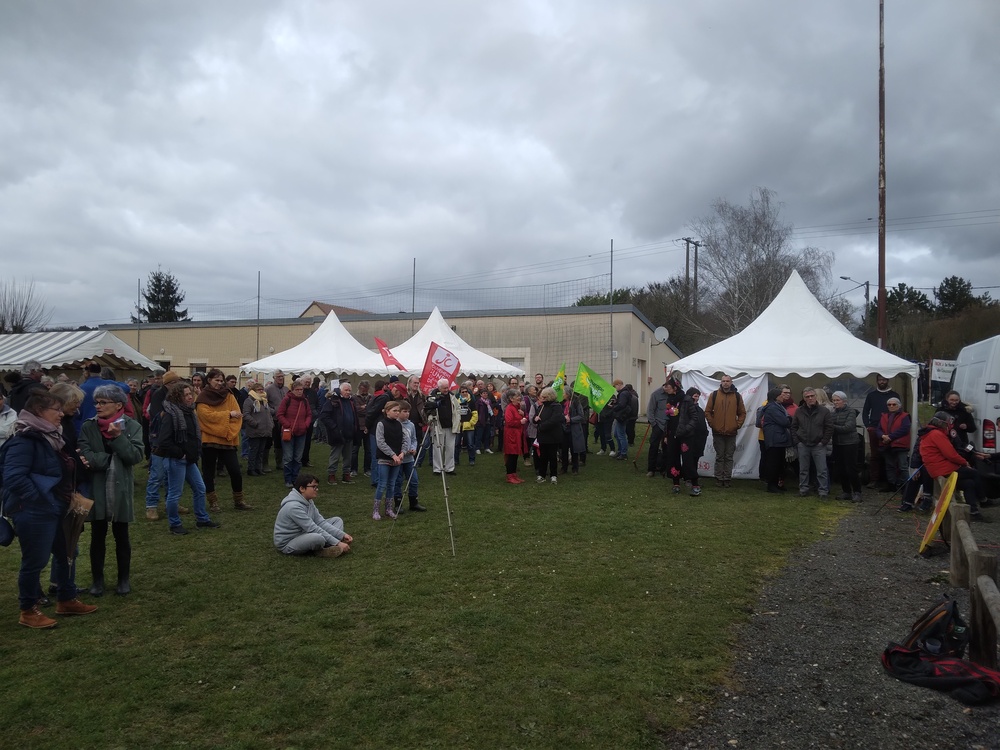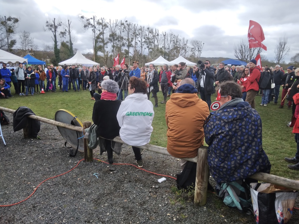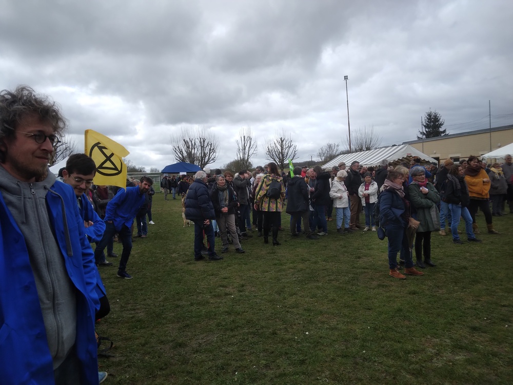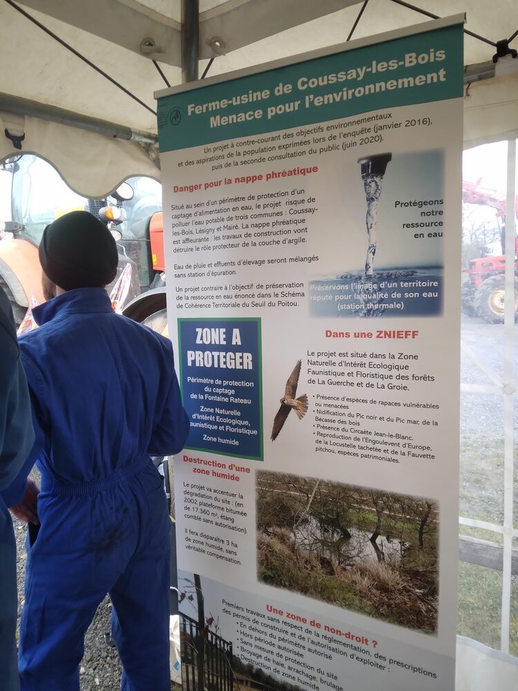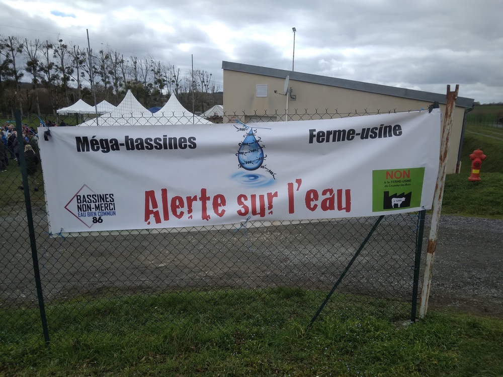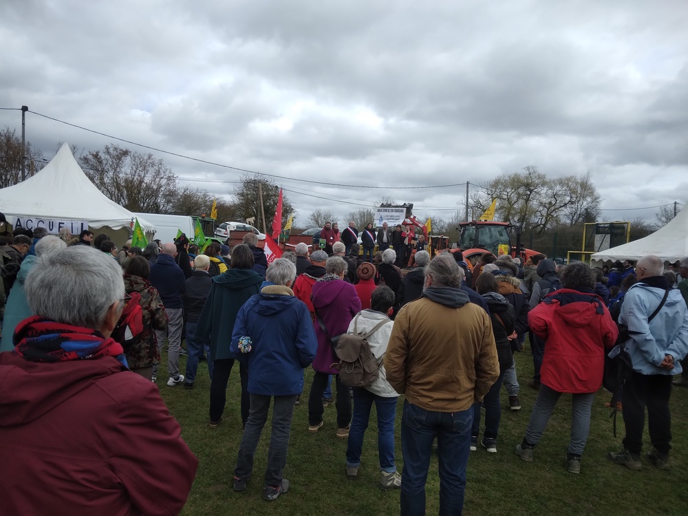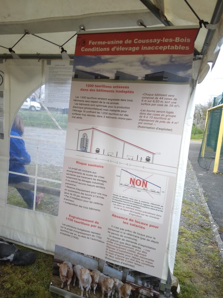 Les enjeux autour de l’eau ne nous quittent plus depuis des mois, depuis des années et la journée du 12 mars à Coussay était dans la continuité des dernières initiatives. A l’Ecole d’Ingénieur de Poitiers qui accueillait le « PTGE Citoyen » (Projet Territorial de Gestion de l’Eau) le 11 mars, le 9 mars la soirée-débat proposée par la députée Lisa Belluco (partage de l’eau et changement climatique) et les rendez-vous des semaines passées. A Smarves, La Villedieu du Clain, Vendeuvre,… Chaque fois, un scénario identique : un public présent en nombre, en demande de formation et d’informations fiables, frustré de l’indigence d’un débat public inexistant. Le plus souvent, les élus, locaux comme nationaux, les « autorités » en charge de la responsabilité administrative, préfet en tête sont aux « abonnés absents » . Une nouvelle preuve, s’il en était besoin en a été apportée sur le dossier « usine à viande » de Coussay. « Usine à viande » plutôt que « ferme-usine » car ce qui s’installe « Aux Paturelles » n’a plus rien à voir avec une ferme. Trois hangars « photovoltaïques » pour y enfermer des centaines de taurillons, les engraisser et les envoyer à l’abattoir. Le tout avec un dossier plein de trous, un permis de construire aberrant mais validé, des recours en tribunal d’appel qui s’éternisent et une atteinte définitive à la ressource en eau. On pourrait allonger la liste tellement cette situation est absurde, dénoncée avec force et conviction par tous les acteurs locaux présents dimanche à Coussay, tant par le collectif ASPECT que BNM86, solidaires dans ce combat commun mais aussi par des élu.es venu.es soutenir ce combat.