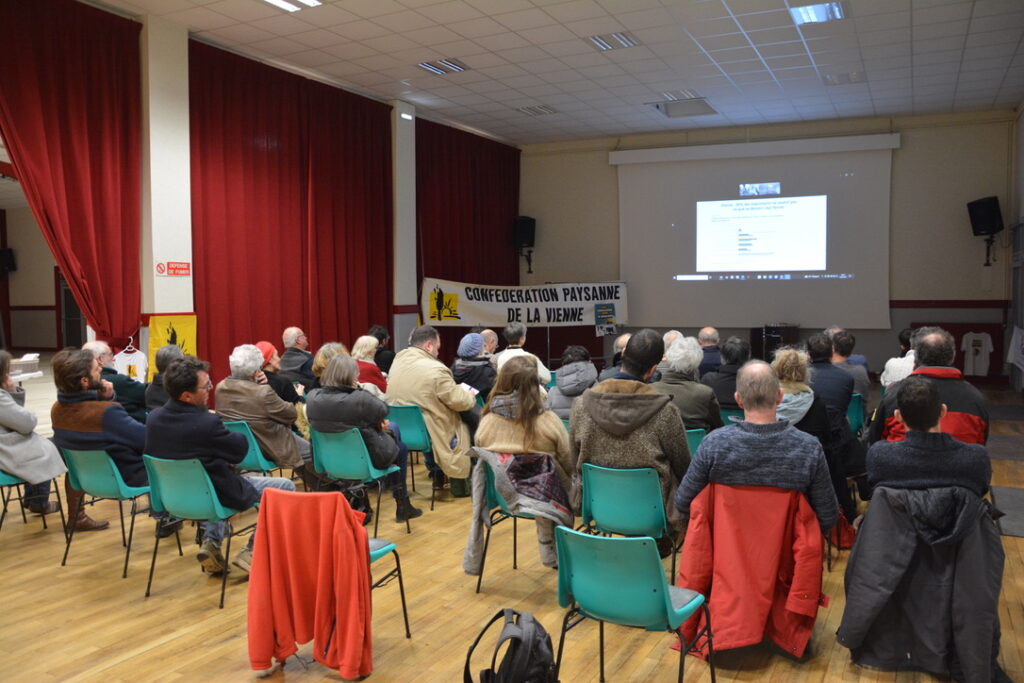 Soirée de la Confédération Paysanne de la Vienne à Mirebeau ce mercredi 15 janvier, en forme d’ouverture de la campagne électorale pour l’élection à la chambre d’agriculture. Election qui se déroule tous les 6 ans et qui dans le contexte actuelle de « crise » dans le milieu agricole suscite bien des tensions. Tensions entre organisations notamment la Coordination rurale et la FNSEA/JA, la Confédération Paysanne ayant un autre discours face à l’état des exploitations, du revenu et des productions comme sur les enjeux concernant l’avenir des fermes et le renouvellement des générations.