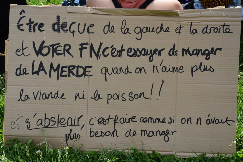 Un danger l’extrême-droite pour les droits des femmes, des minorités, des étrangers,… ? Vous en doutez ? Allez jeter un œil sur le programme du RN, ce que la majorité des « grands » médias ne se donnent pas la peine de faire. Environ 400 personnes se sont mobilisées aujourd’hui, à une semaine du 1er tour des législatives, pour dire, redire et dire encore qu’extrême-droite ne rime pas avec droits des femmes et libertés démocratiques en général.