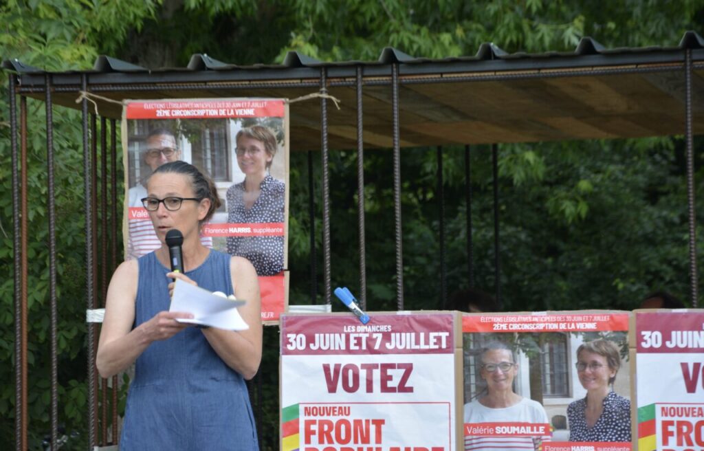 Une grande partie des manifestant.es se sont ensuite retrouvées au parc du triangle d’or pour la fête du Front Populaire et une prise de parole des candidates du NFP, Valérie Soumaille et Florence Harris pour la 2ème circonscription de la Vienne. Et de la musique, et des discussions jusqu’au bout de l’après-midi…