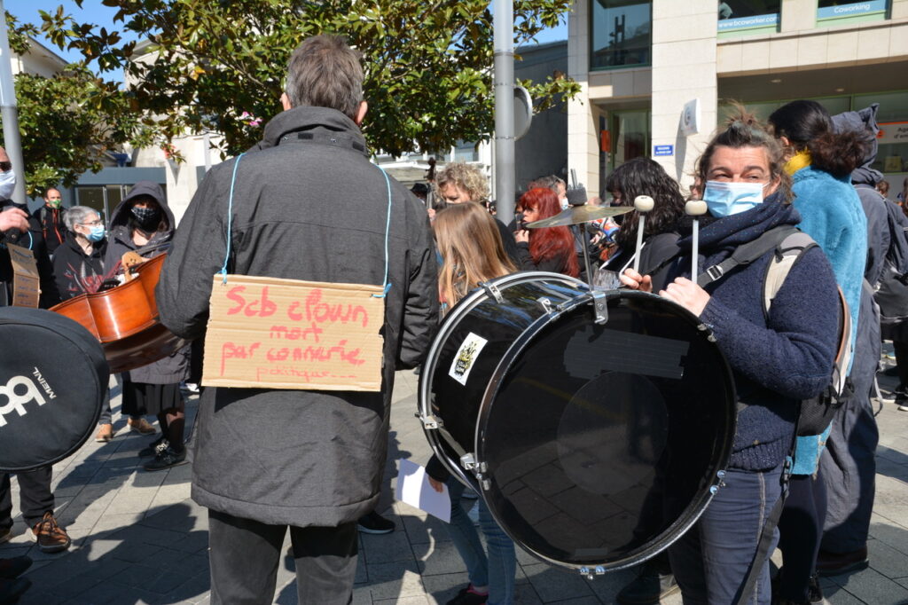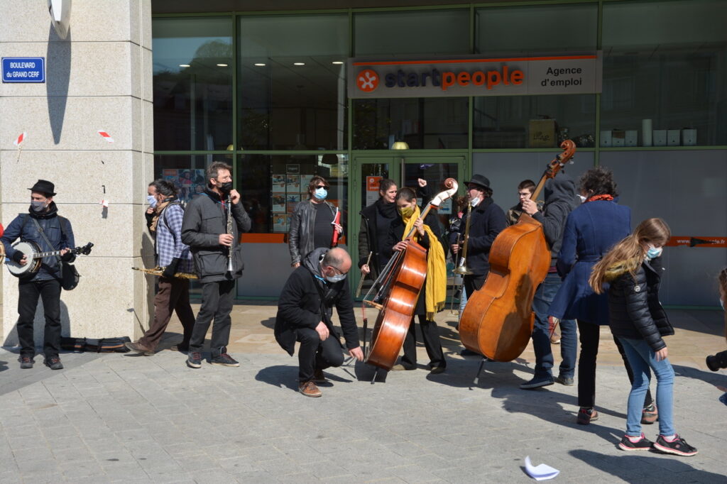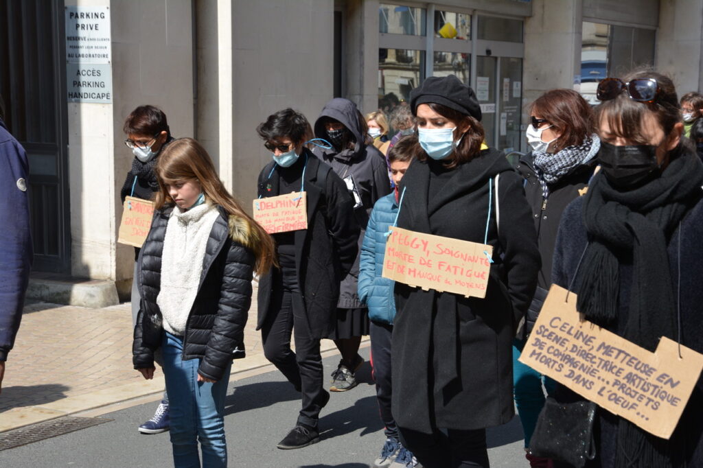 Une petite centaine de personnes, (artistes intermittents, salarié.es d’autres secteurs, enseignant.es, personnels soignants, sans emplois, citoyen.nes…) se sont retrouvé.es ce vendredi 16 avril devant l’agence Pôle emploi à la gare de Poitiers. A l’ordre du jour, la situation catastrophique des salarié.es de la Culture confronté.es depuis des mois à la fermeture des lieux culturels, la réforme de l’Assurance chômage et les dégâts que cela entraîne, comme si la situation de l’emploi n’était pas déjà critique. L’occupation du Théâtre de Poitiers (le nouveau « Théâtre Au Peuple » ) depuis trois semaines maintenant contribue à la mobilisation permanente et aux échanges fructueux entre des secteurs d’activité qui n’ont pas toujours l’occasion de discuter aussi souvent ensemble. Ce qui amène à des discussions passionnées, des accords et des désaccords qui permettent de confronter des points de vue, d’avancer des propositions, des actions à mener en commun. Ce « Vendredi de la colère » en était un nouvel exemple : des actions qui doivent perdurer et faire progresser des fonctionnements « horizontaux » permettant de s’organiser dans la durée et de construire des solidarités actives. Pour un « Vrai Monde d’après » ?