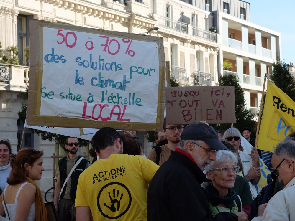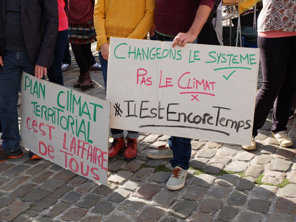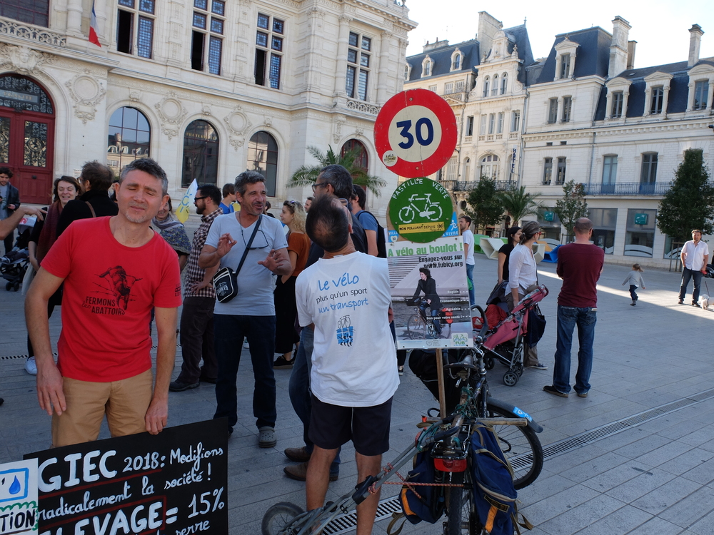 Il a été rappelé qu’en même temps que la manifestation se tenaient des réunions institutionnelles du PCAET (Plan Climat Air, Énergie, Territoire) que doivent construire les collectivités territoriale pour s’attaquer localement aux problèmes écologiques.