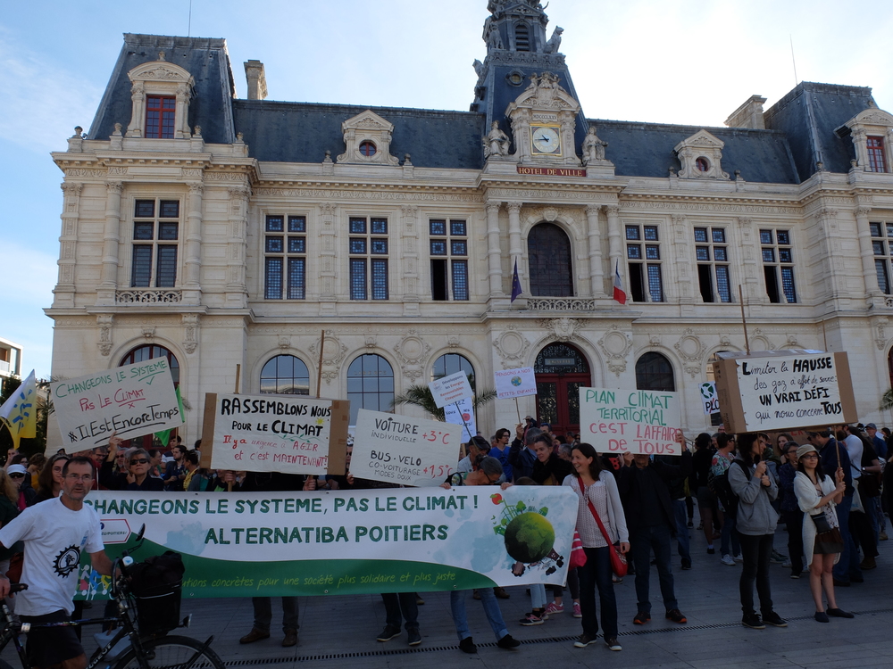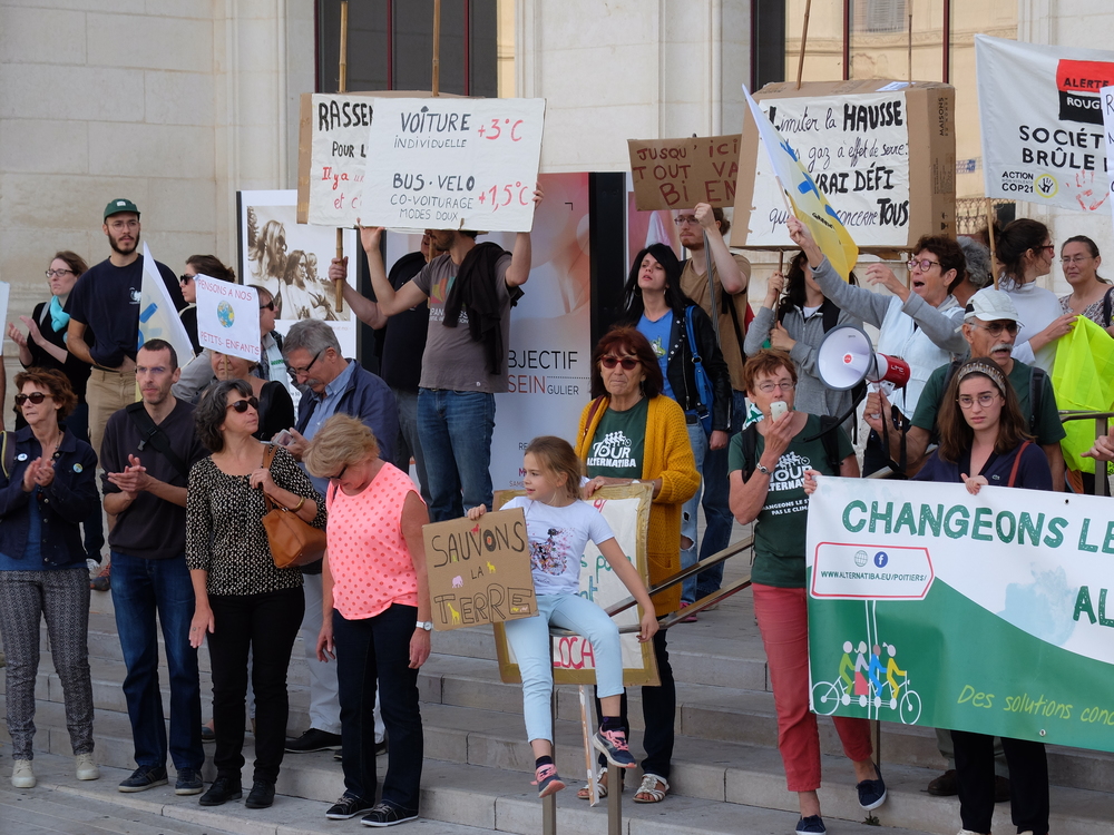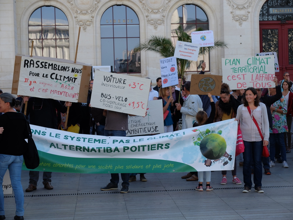 Organisée par Alternatiba Poitiers, qui tiendra sa grande réunion le 19 octobre, on a vu jusqu’à 300 personnes au plus fort de la manifestation.