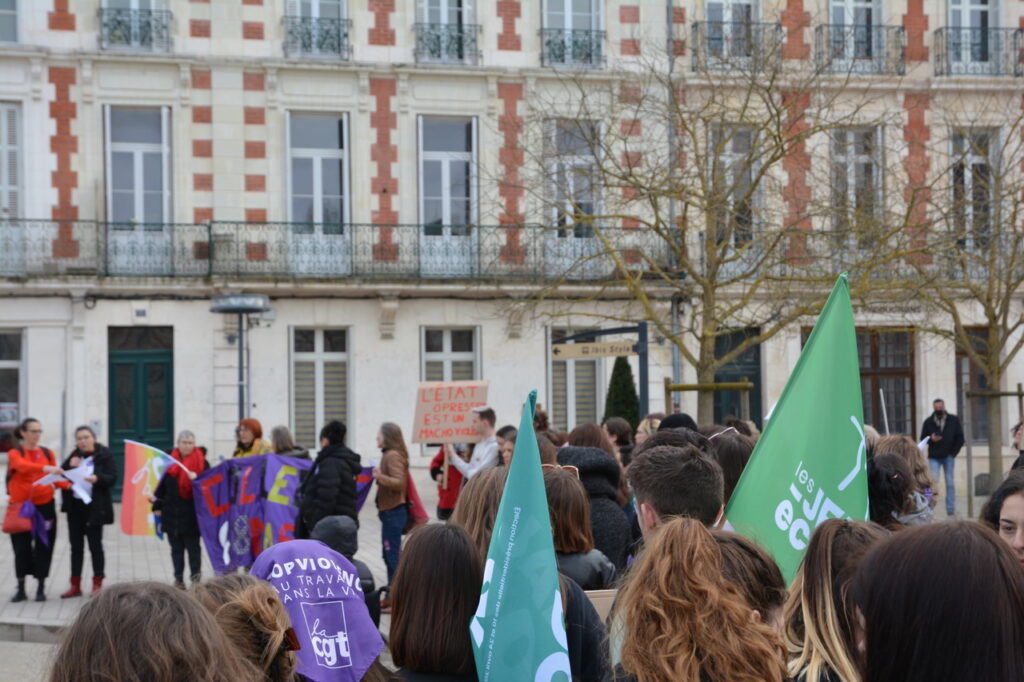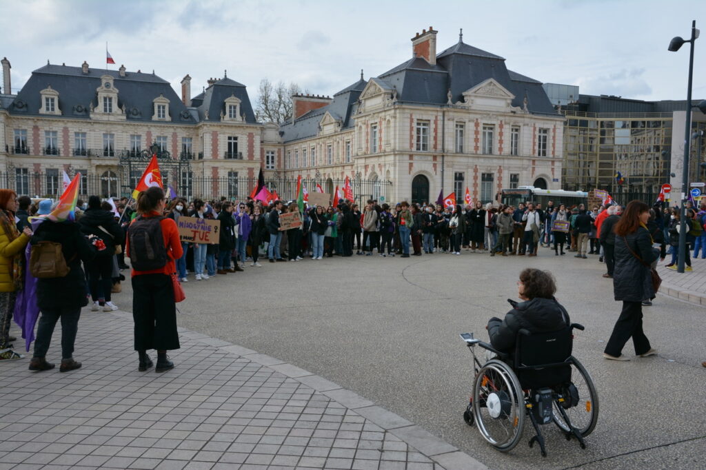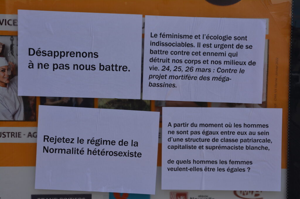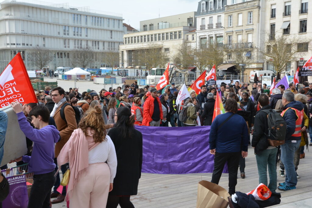 … Quand ? Tout de suite ! Le « Collectif du 8 mars » a lancé la manifestation en rappelant les différents temps forts de la journée, une journée du 8 mars dynamique à Poitiers ce mardi avec plus de 250 personnes dans la rue. On aurait pu attendre plus de monde, étant donné les enjeux, entre l’égalité salariale et des droits identiques au quotidien pour toutes et tous.