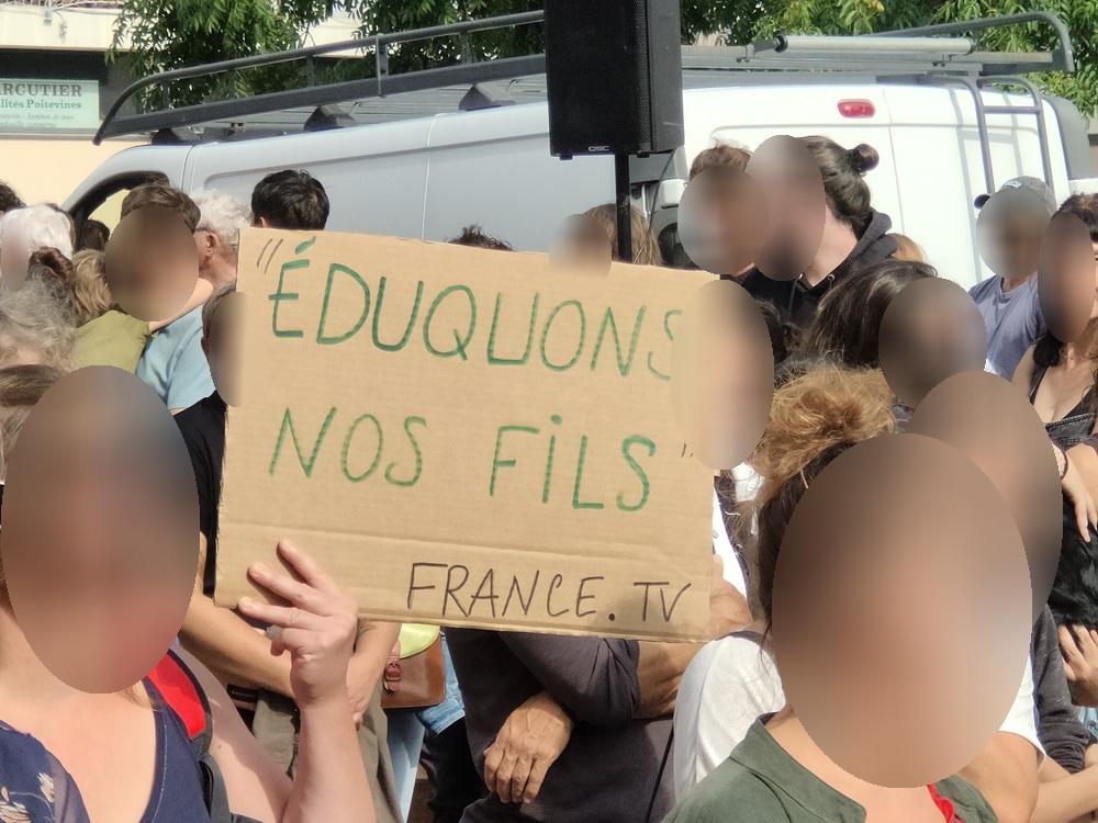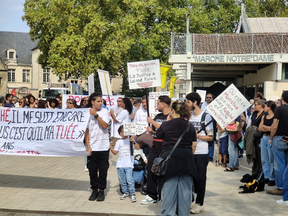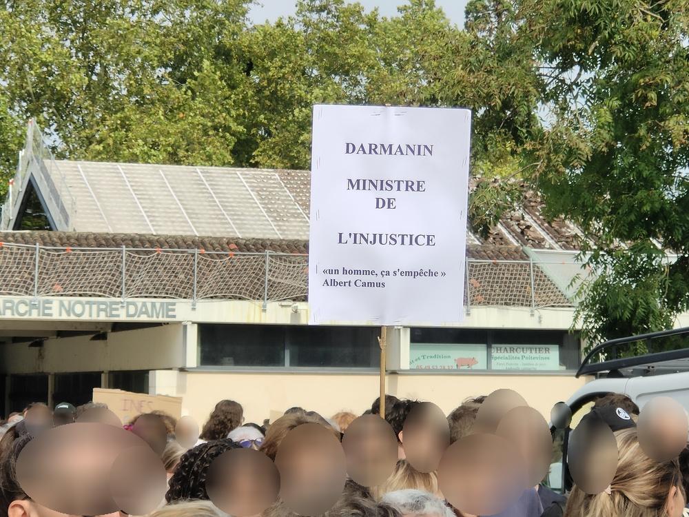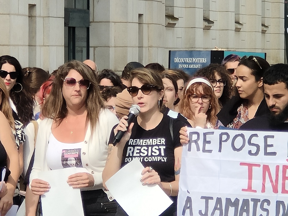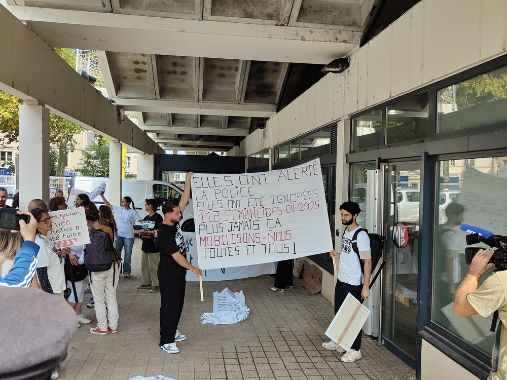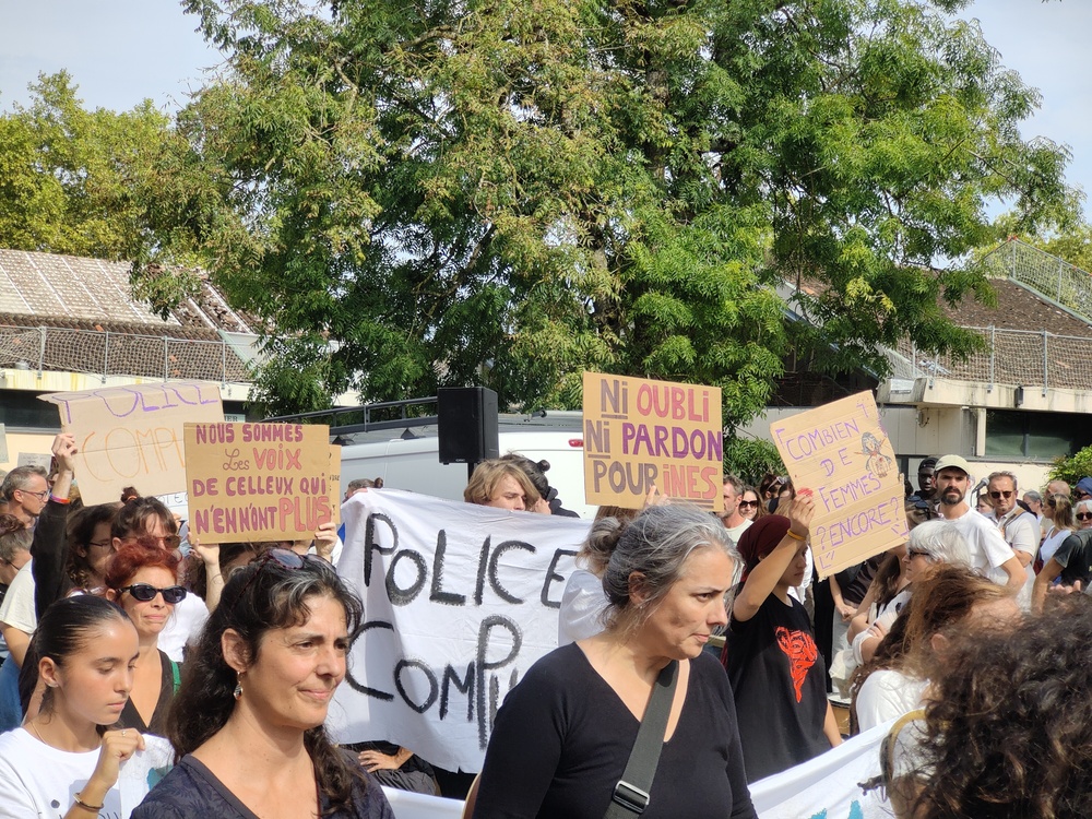 Le cortège de 1 200 à 1 500 personnes est arrivé devant le Commissariat de Poitiers, là où Inès a 6 fois déposé plainte, là où a été entendu puis aussitôt relâché plusieurs fois son agresseur qui est devenu son assassin, toujours en fuite.