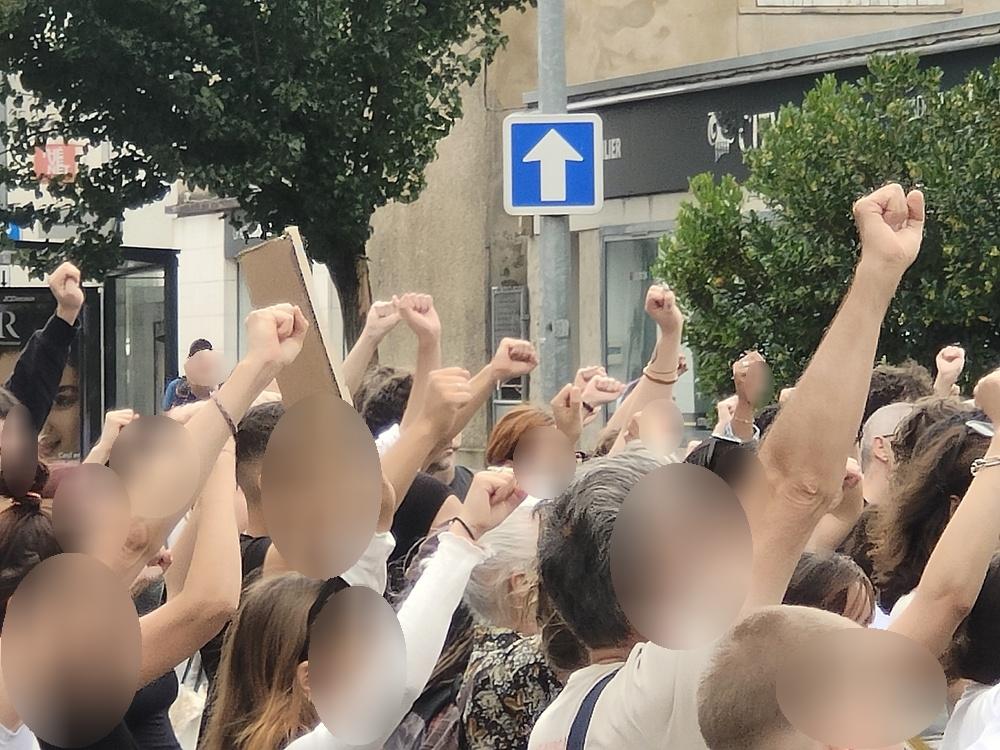 Poings levés, le cortège s’est ensuite rendu à la Préfecture puis Place d’Armes.