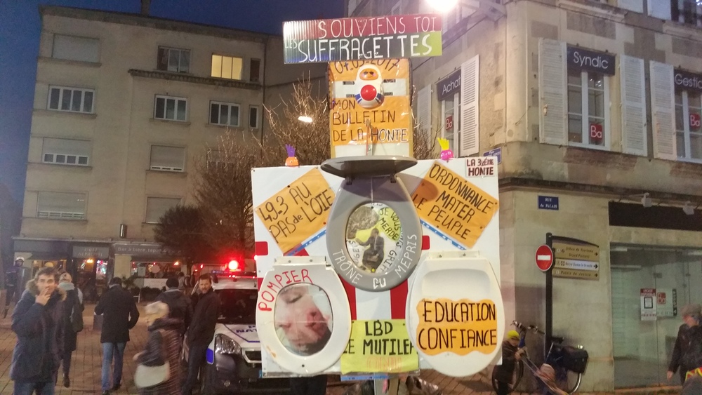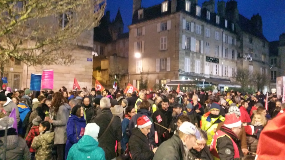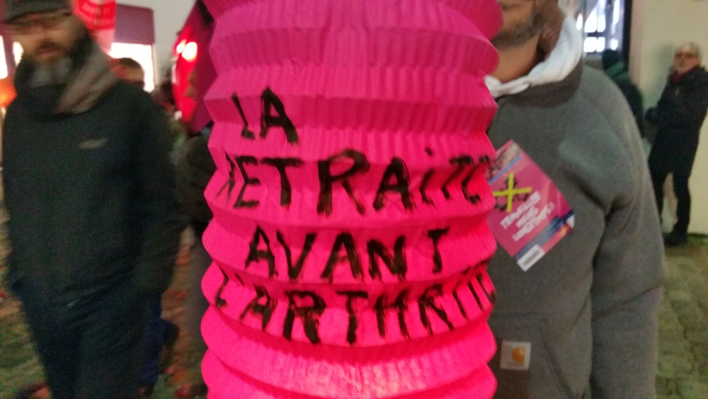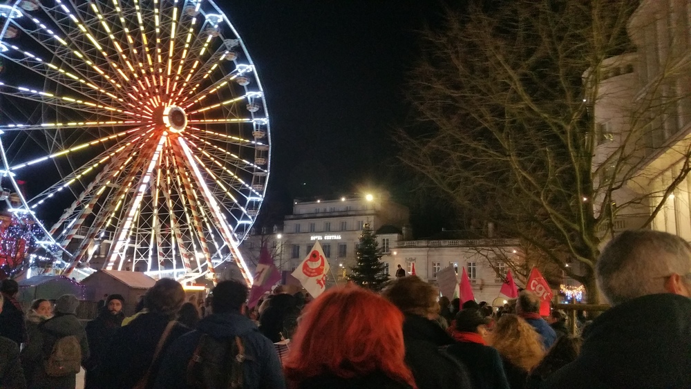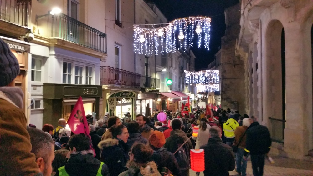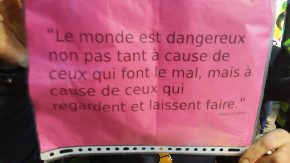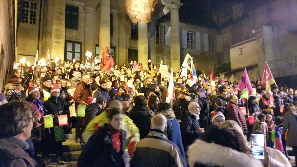 Il y avait au moins 700 personnes (on a compté). Parmi les slogans entendus un doux « Macron démission », la chanson des gilets jaunes bien présent-es (« on est là… ») , le tube incontournable « on lâche rien », l’inattendu ici « on est plus chaud que le climat »