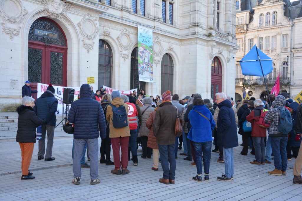 Plus de deux cents personnes avaient bravé un froid matinal mais sous le soleil pour se rassembler devant la mairie de Poitiers samedi 1er février. On ne refera pas ici l’historique de la mobilisation en cours pour le maintien du bureau de poste de Poitiers-Libération. Web86 se fait l’écho depuis plusieurs mois de l’action au long cours que mène le Collectif de défense du bureau menacé.