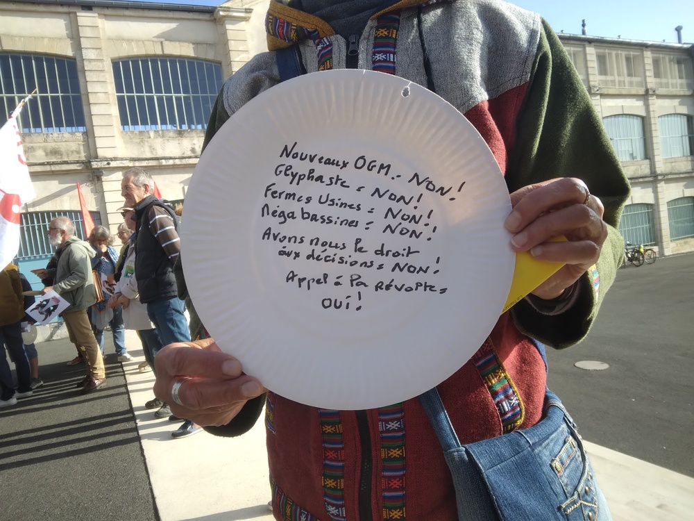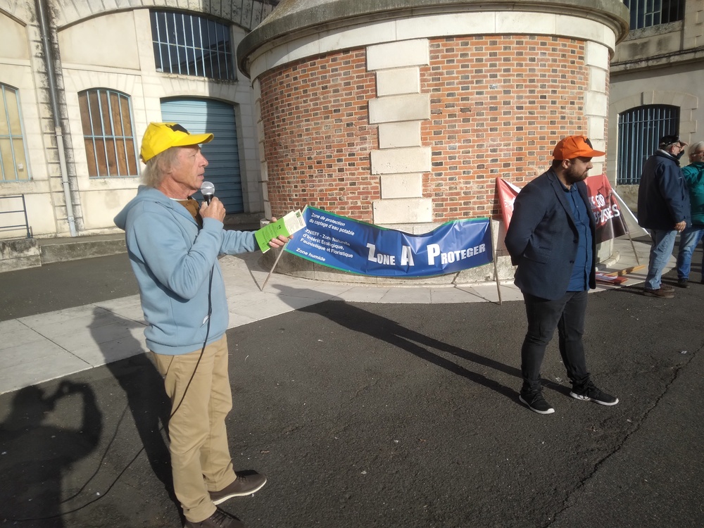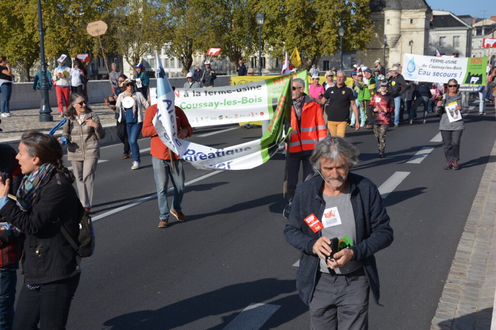 ASPECT et la Confédération Paysanne avaient reçu le soutien et le renfort de plusieurs associations (Bassines Non Merci, Greenpeace, ATTAC, les Amis de la Terre,…) et mouvements politiques (France Insoumise, PCF, MJC, Châtellerault Insoumise) pour une déambulation « bon enfant » et dynamique à coup de casseroles, sifflets, crécelles et autres objets sonores…
