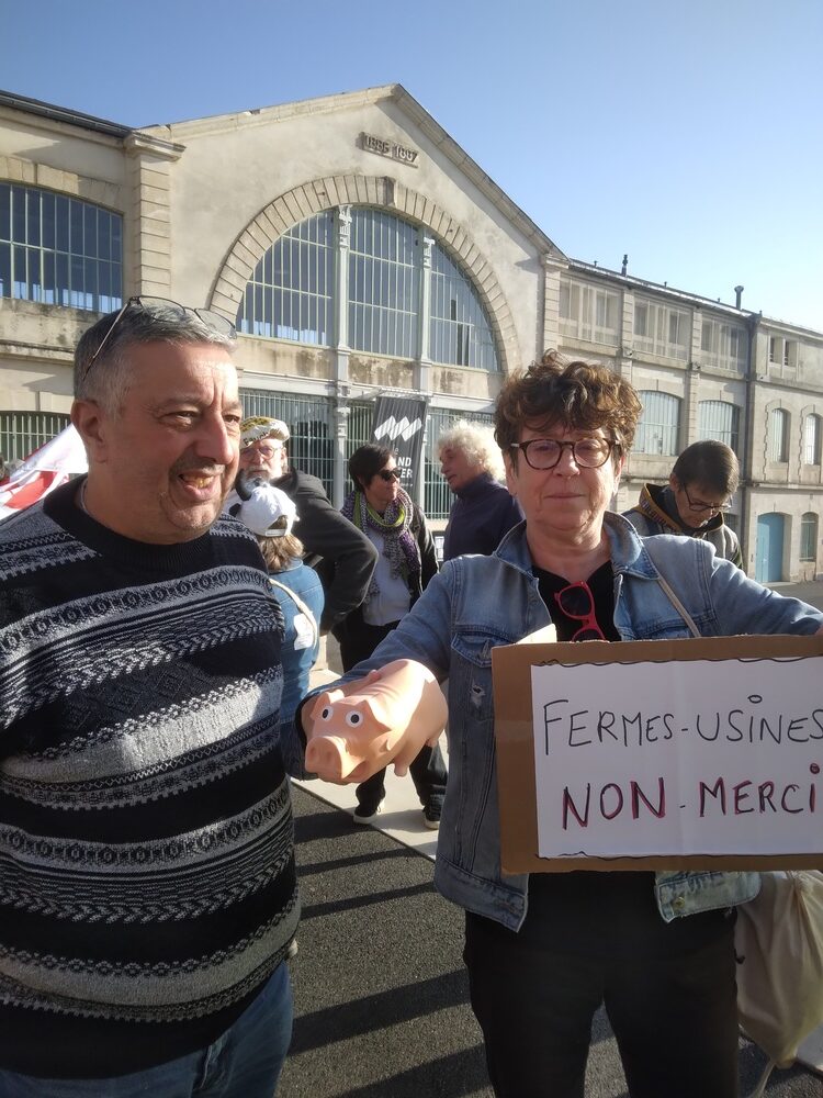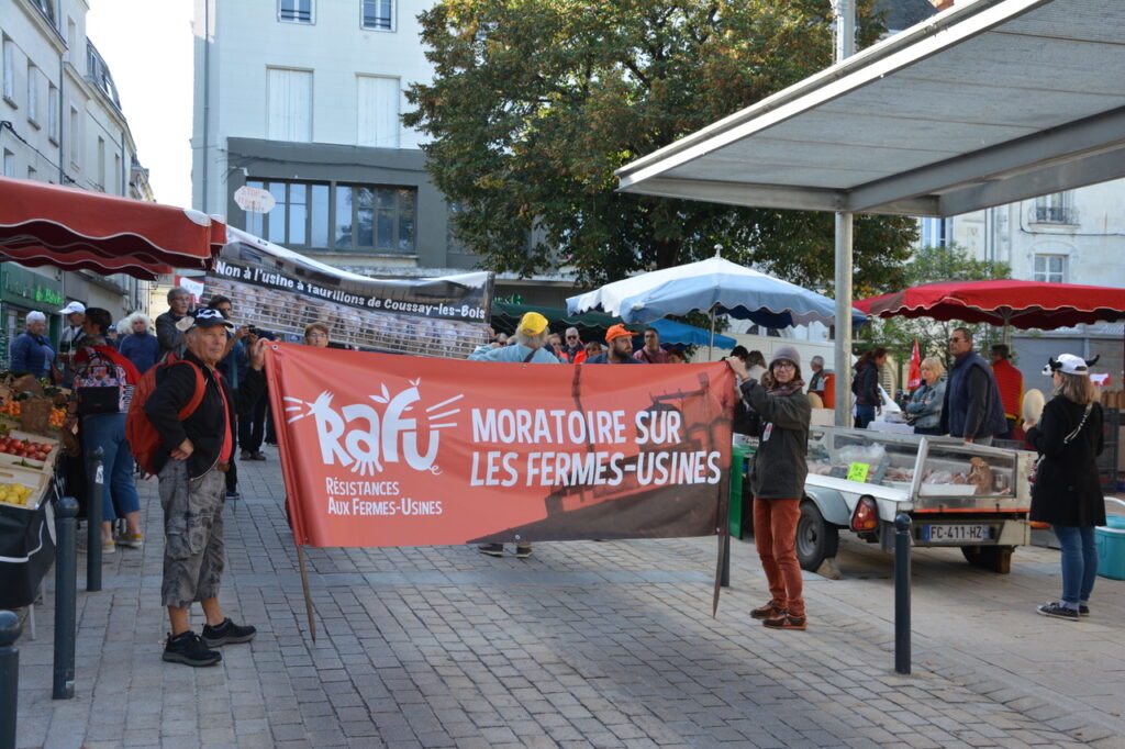 Le collectif RAFU « Résistance Aux Fermes-Usines » appelait à une journée nationale d’action contre ces structures gigantesques qui concentrent animaux, polluants divers et mise en danger d’une agriculture respectueuse de l’environnement et des populations.