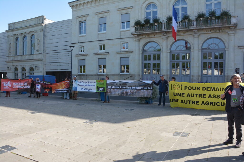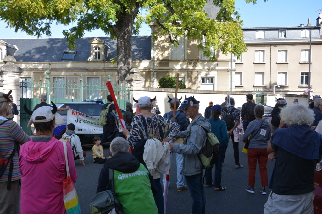Jusqu’à quand ça va durer ce mépris de l’Etat qui dicte des règles qu’il est le premier à ne pas respecter ? L’arrivée devant la sous-préfecture s’est conclus avec les dernières interventions et des paroles fortes se sont fait entendre… On fait une ZAD à Coussay ? On va jusqu’au bout ? Après des années de lutte et le constat que le promoteur de « cette usine à viande » continue envers et contre tout, (le monde) ne faudra t-il pas passer un nouveau palier dans la lutte ? Darmanin qui voit des ZAD partout pourrait ne pas être déçu de la suite.