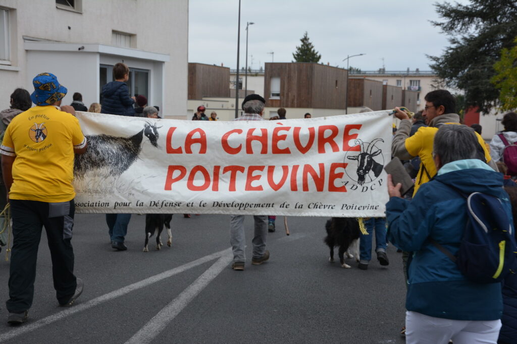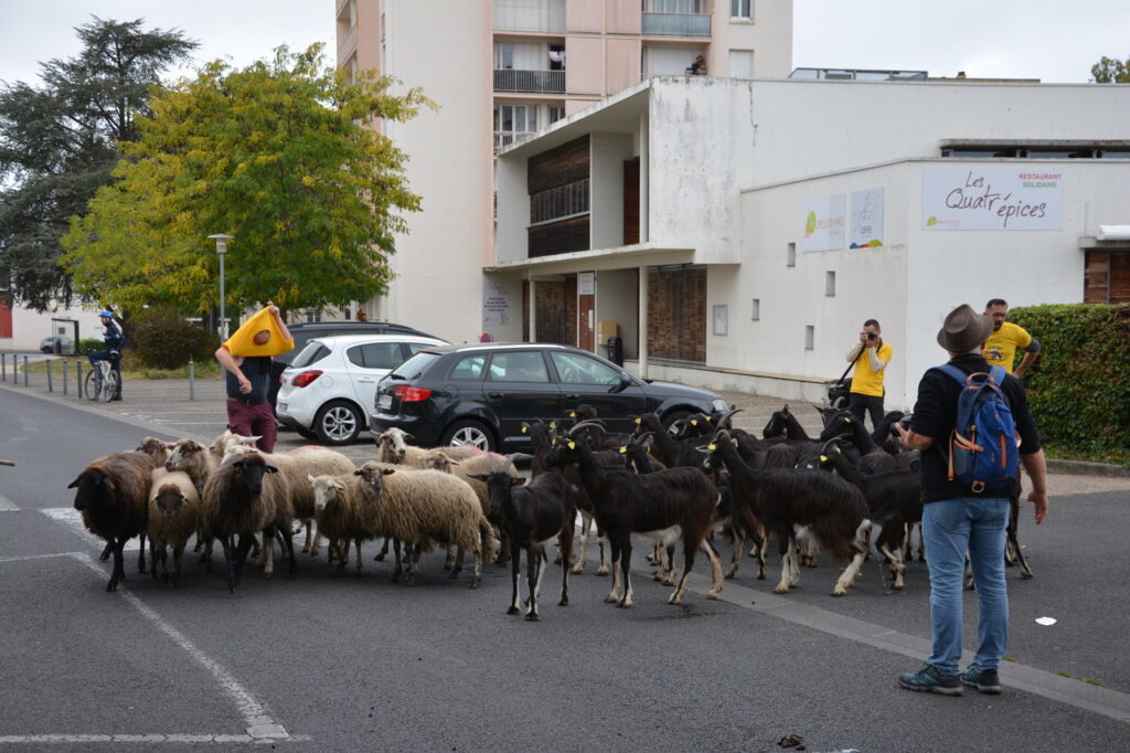 Belle journée pour une rencontre… dimanche 25 septembre à Poitiers : une transhumance de chèvres, poitevines de surcroit a traversé le quartier des Trois Cités en partant du parc du triangle d’or vers l’îlot Tison ! Au grand bonheur des enfants et des adultes qui ont accompagné le troupeau sur le parcours via la rue du Haut des sables et la promenade des cours.