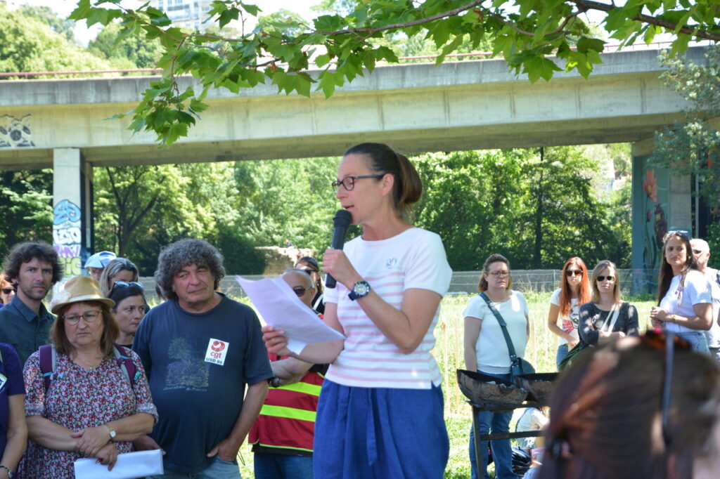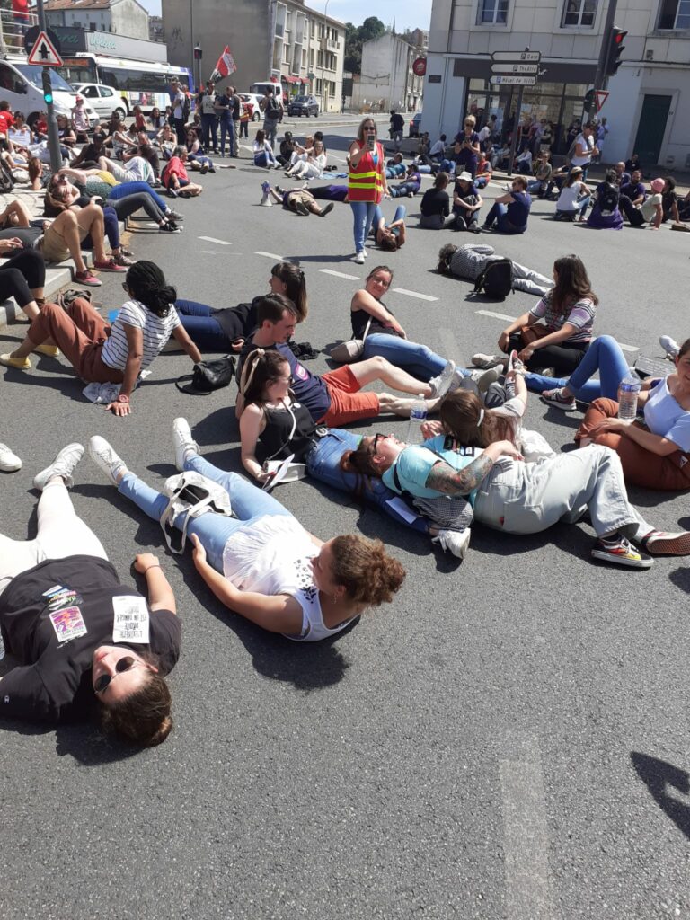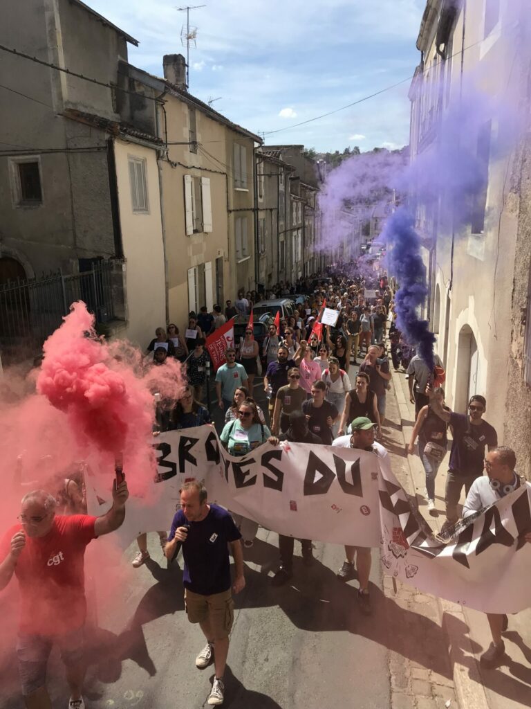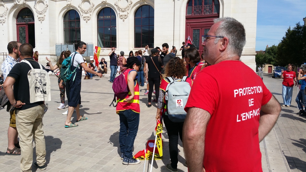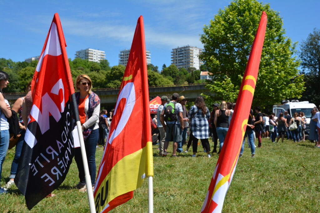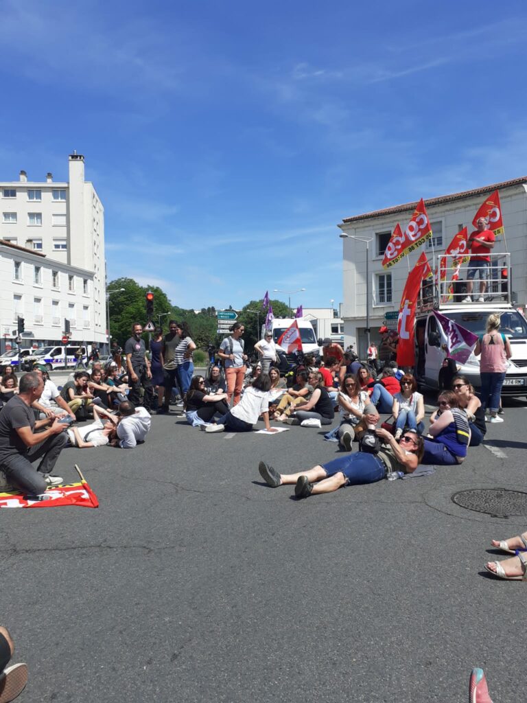 Ça commence devant la palais de justice avec des prises de parole dont celles de deux des candidat.es de la NUPES, Valérie Soumaille (Vienne 2) et Jason Valente (Vienne 3) venu.es soutenir le mouvement et les grévistes.