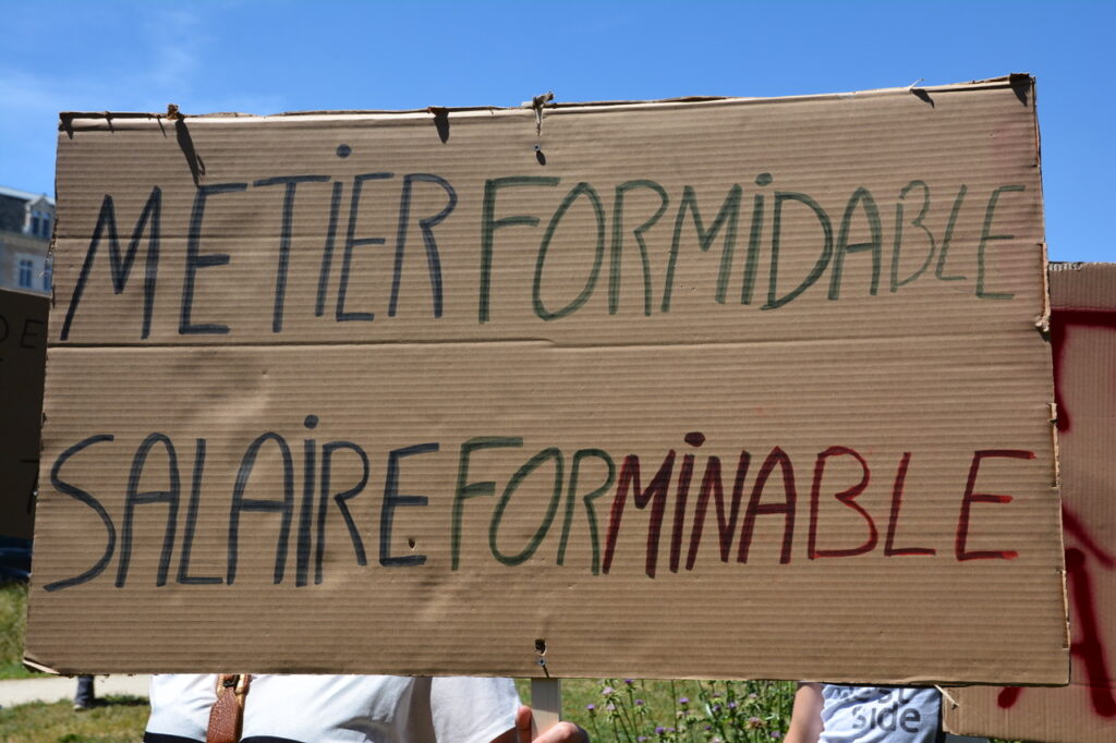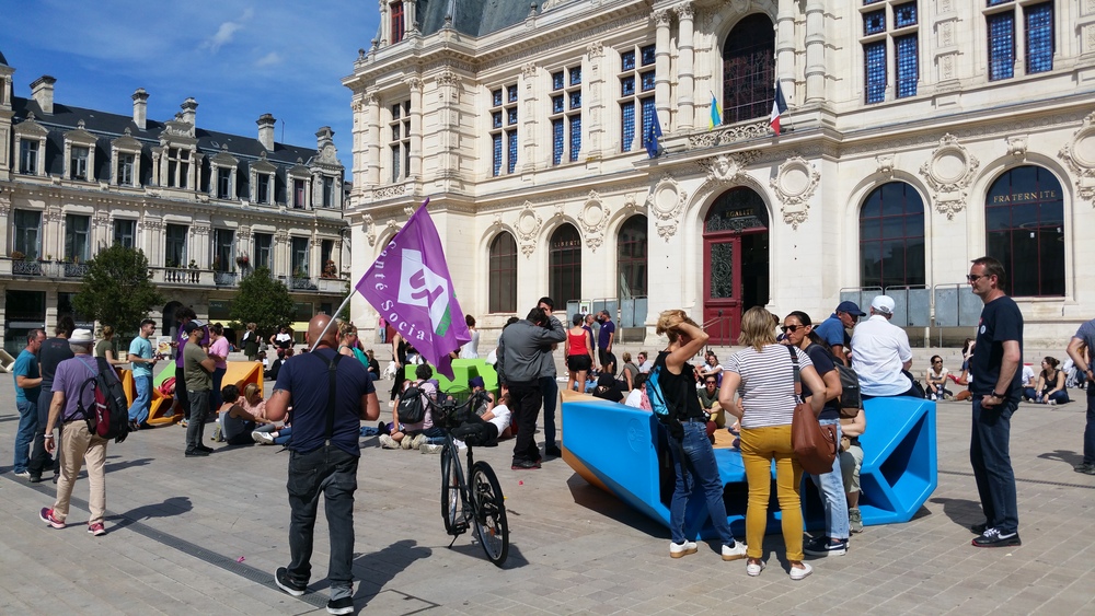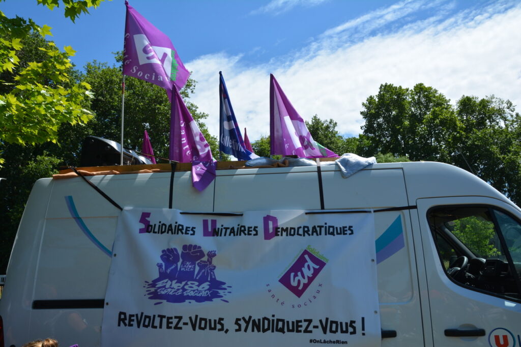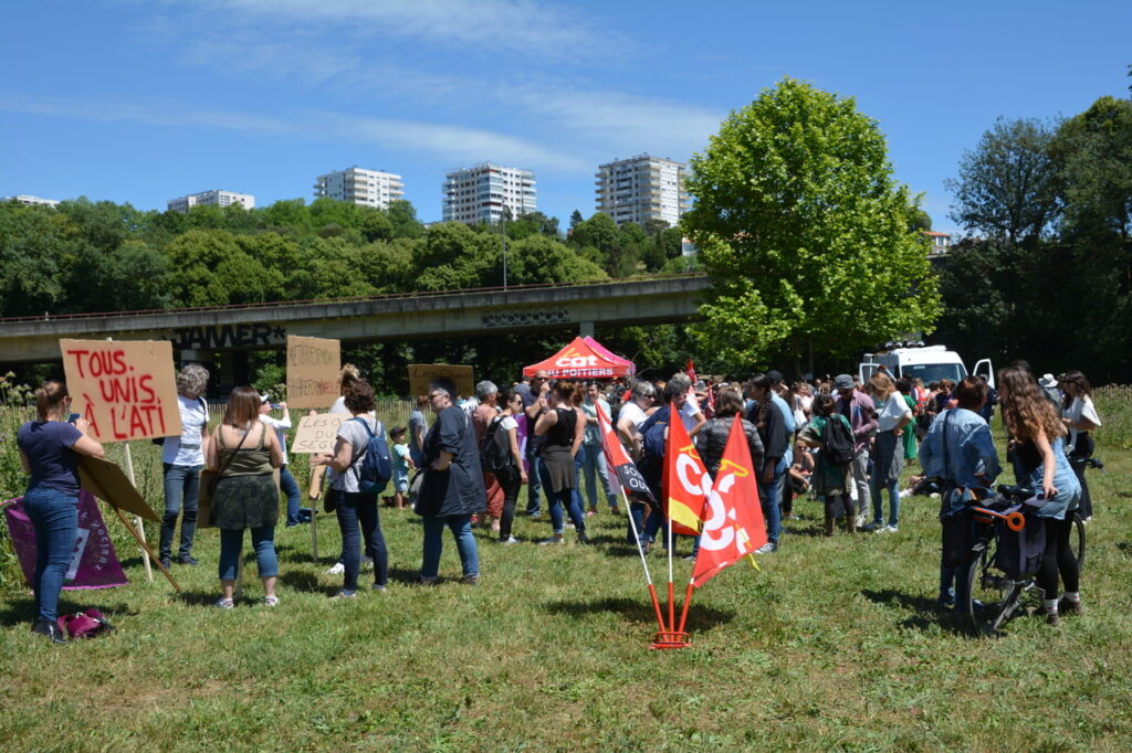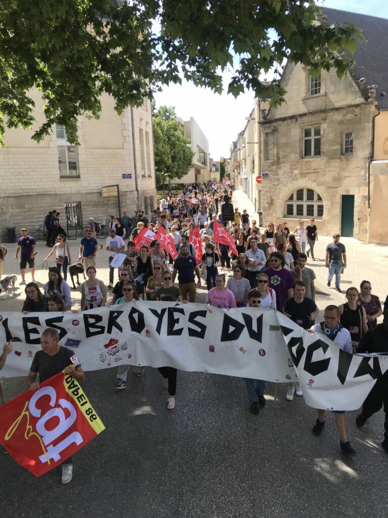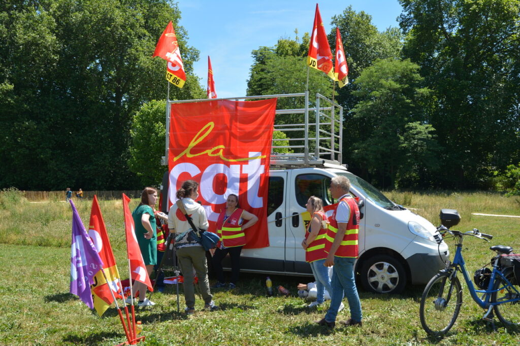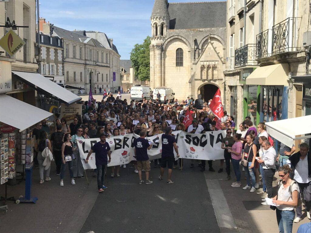 Ça commence devant la palais de justice avec des prises de parole dont celles de deux des candidat.es de la NUPES, Valérie Soumaille (Vienne 2) et Jason Valente (Vienne 3) venu.es soutenir le mouvement et les grévistes.