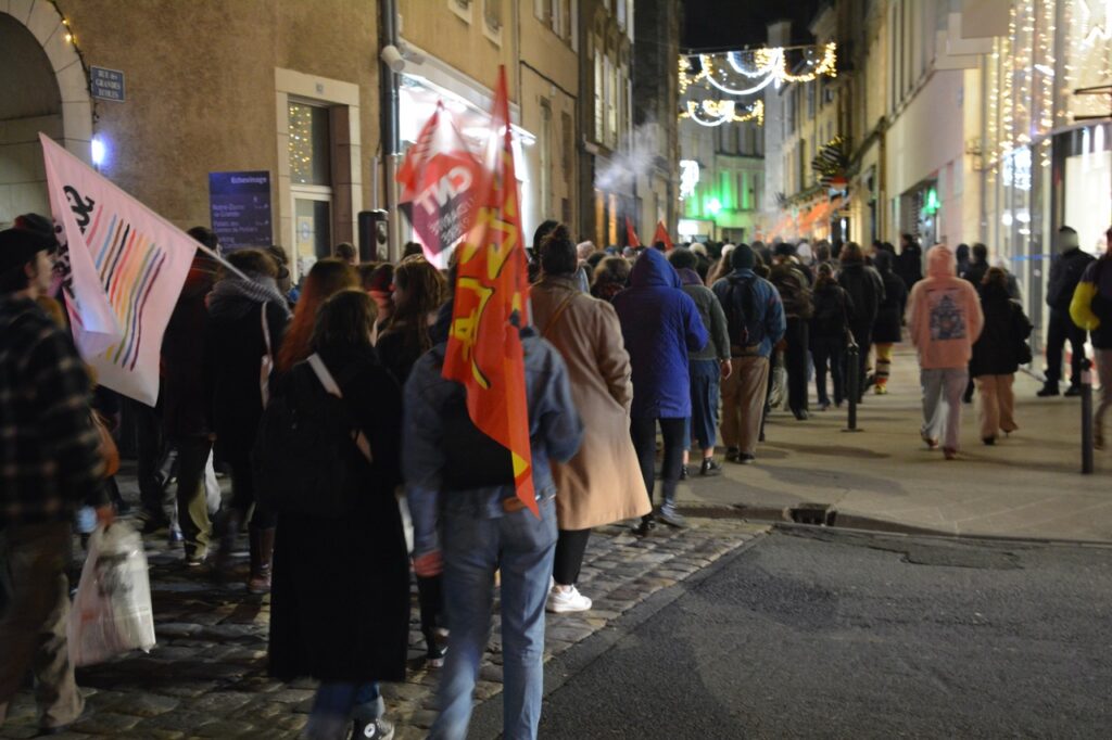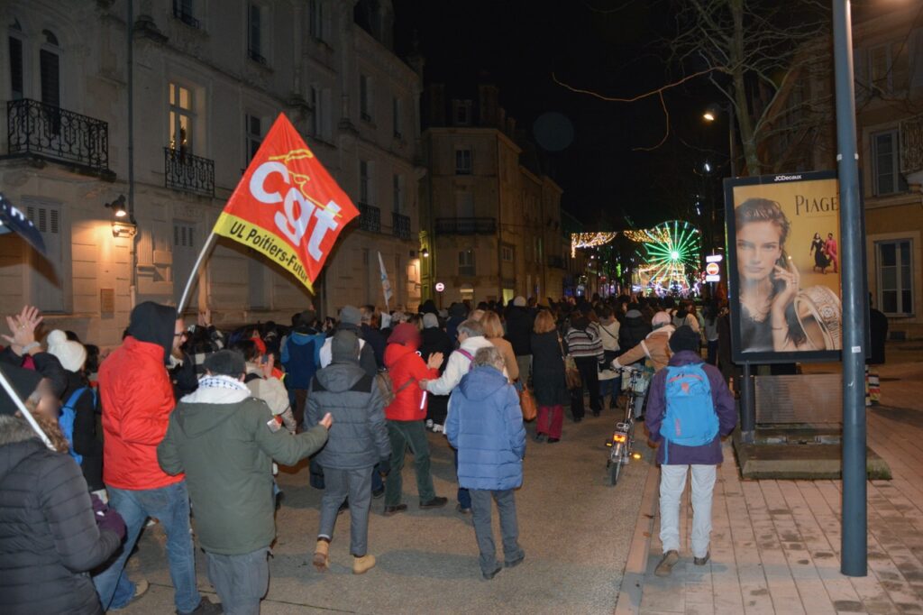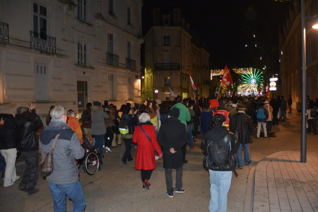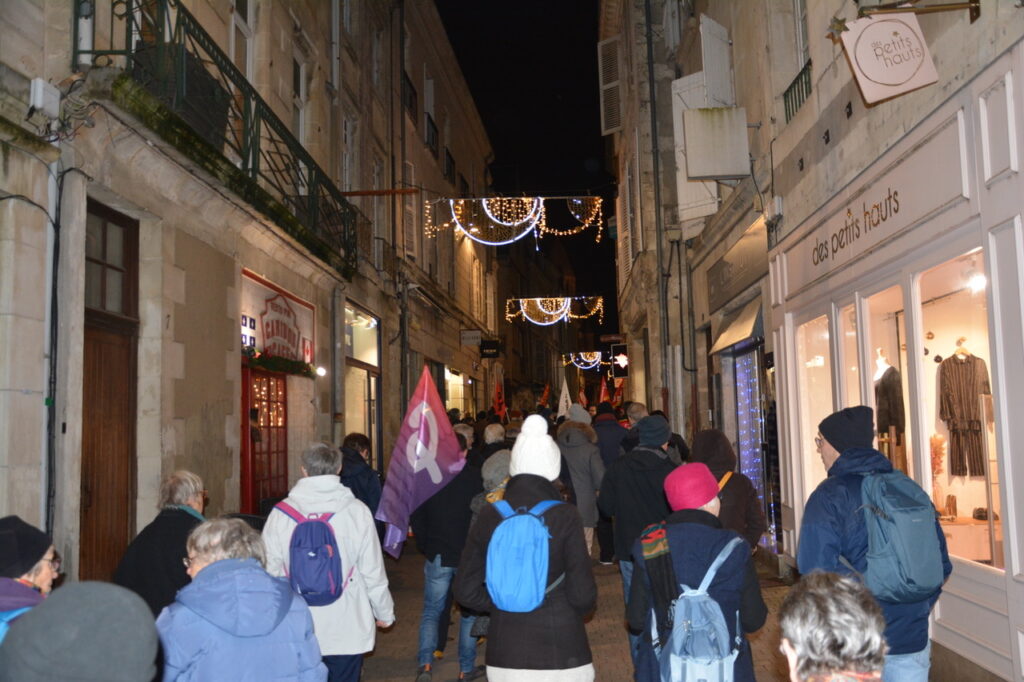 … comme le disait fort justement une pancarte présente dans la manif de mercredi soir devant la préfecture de la Vienne à Poitiers. Un rassemblement appelé en urgence à la suite de la loi contre les étrangers votée mardi 19 décembre à l’Assemblée Nationale. Entre 250 et 300 personnes sont rapidement parties en manifestation spontanée à travers des rues piétonnes pleine de monde. Est-ce la raison pour laquelle les FdL bien présentes sont restées au final discrète ? Du « désordre » , cela aurait fait mauvais effet au milieu des badauds en plein rush de Noël.