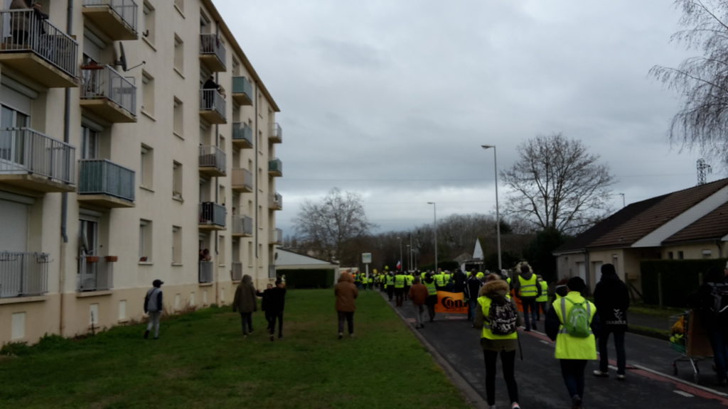 La manif a traversé les quartiers emblématiques de Châtellerault. C’est la manif la plus nombreuse depuis le début du mouvement. Une radio régionale annonçait hier soir 600 participants ! On était beaucoup plus