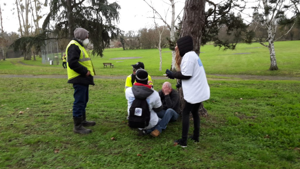 Le gaz lacrimo comme moyen de provocation : 2 blessés évacués et soignés par les street-medics. 2 ou 3 jeunes ont cherché à répondre, vite calmés par les Gilets jaunes eux-mêmes.