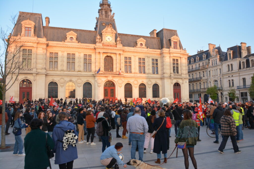 A Poitiers comme dans 374 villes et villages de France (au moins), il y avait du monde sur la place de la mairie. Du monde heureux d’avoir laissé la télé ou la radio ou les réseaux sociaux pour dire ensemble, pour frapper ensemble, pour jouer ensemble, pour siffler ensemble,…. Pour se faire entendre plus fort puisque le monarque de l’Elysée reste sourd à ce qui fait consensus dans la population : ta réforme on n’en veut dé-fi-ni-ti-ve-ment pas ! C’est plus clair en le gueulant ?