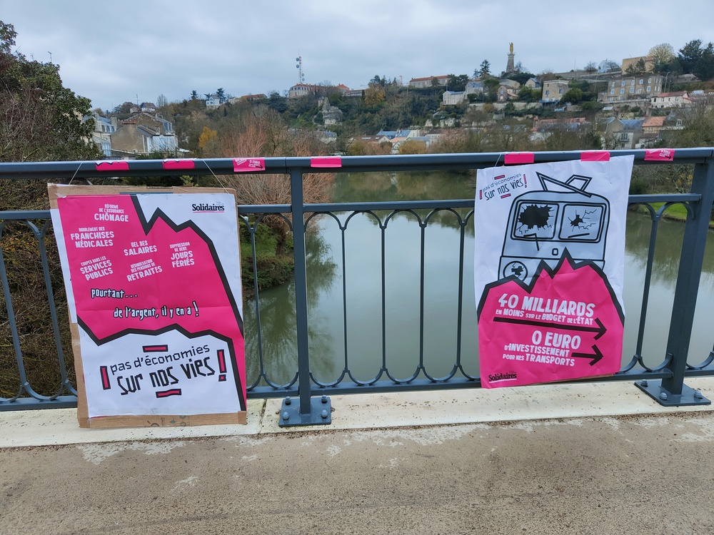 Les prises de parole de l’intersyndicale ici le « discours inauguration du pont des revendications » et là les revendications.