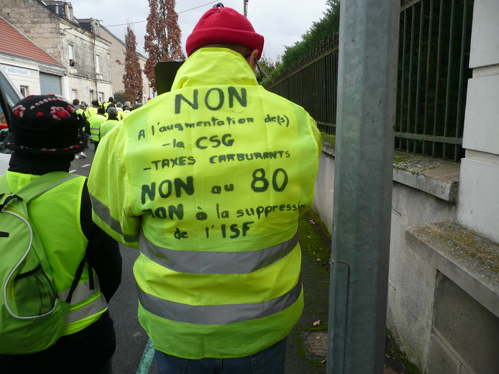 J’ai appris que vous étiez gazé au niveau du pont, je suis choqué et indigné contre les méthode pris par la ville de Châtellerault mais surtout par la préfecture, je pense que certain d’entre vous ont vu se que j’ai écris sur les réseau sociaux notamment sur Facebook c’est vrai que je me suis emporter et j’etait dans une forte colère quand j’ai vu certain gilet jaune passé par la ligne de chemin de fer ou même moment il y avais des trains qui sont passé au même moment certe que se sont pas des TGV ou même des TER mais j’ai eux peur pour vous et pour le journaliste de France Bleu Poitou qui était prêt de vous entrain de vous filmé d’ailleurs dans mon post Facebook j’ai que c’était un journaliste FR3 je m’en excuse au passage. Comme je le dit à chaque fois je le redirais tant qu’il le faut je suis de tout cœur avec vous les gilet jaunes mais la ou je suis pas d’accord avec vous c’est comment vous faire les choses. Oui il faut bouger les choses mais de mon point de vu pas à vous mettre en danger. Je soutien aussi les personnes qui se sont fais gazé ou autre c’est clair que les CRS ou la gendarmerie mobile de devais pas faire se qu’il ont fais.