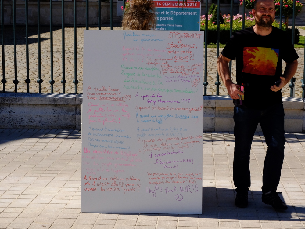 Un panneau où la population pouvait envoyé un message écrit à Macron