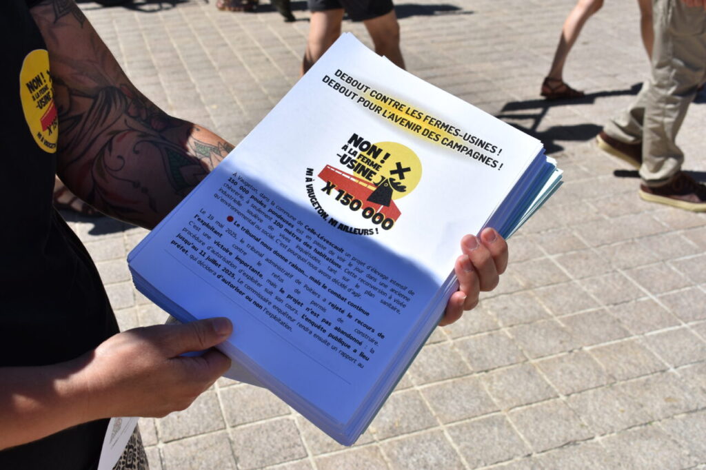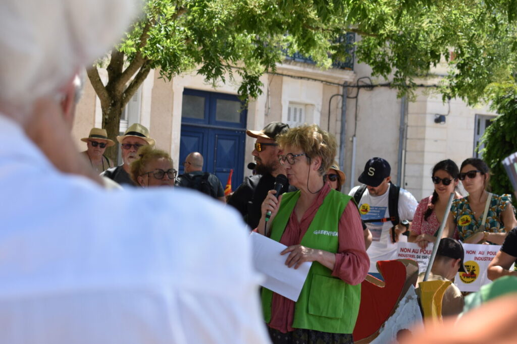 Présent au rassemblement, le maire de de Celle-Lévescault, Frédéric Léonet, a pu prendre la parole pour rappeler son opposition au projet d’installation. Après avoir refusé le permis de construire de l’entreprise Riquet, celui-ci avait dû affronter la firme agricole devant le tribunal administratif pour voir sa décision confirmée. Aujourd’hui, habitant⸱e⸱s comme édile ont pu compter sur le soutien de l’association Greenpeace fortement mobilisée.
