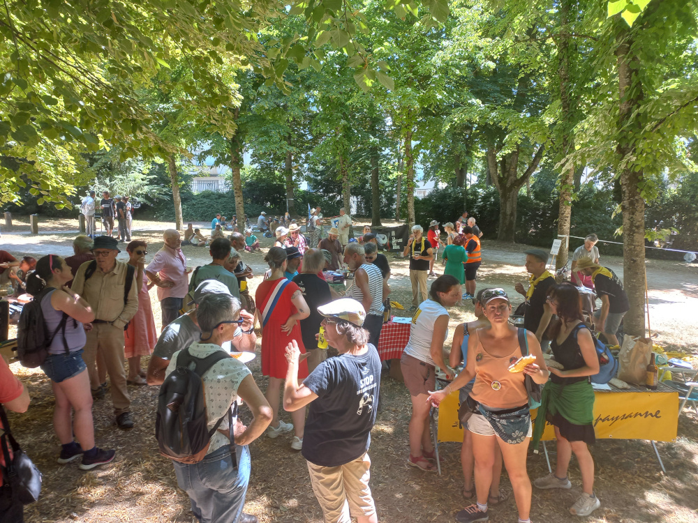 Pic-nic partagé sous les arbres à Blossac avec les bons produits de Confédération Paysanne.