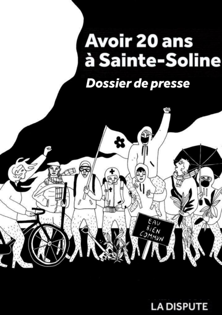 Un collectif de chercheur, baptisé « collectif du Loriot », prépare un livre, recueil de témoignage sur le sujet : « Avoir 20 ans à Sainte-Soline » à sortir en mars. Edité par La Dispute, sous forme de réponse au traitement médiatique et politique qui a été fait autour de ces événements, « Avoir 20 ans à Sainte-Soline », est un ouvrage collectif qui propose de restituer, par un jeu d’entretiens croisés avec celles et ceux qui y ont participé, une série de récits de ce week-end de mobilisation et propose un contre récit sur l’engagement de jeunesse.