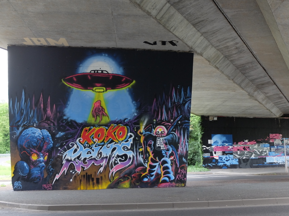 S’approprier la ville peut passer par le graffiti. Pratique marginale voire illégale, le graff est aussi devenu un art reconnu, le street-art. À Poitiers, les piliers de la Pénétrante sont recouverts d’œuvres de l’association Pictav’art.