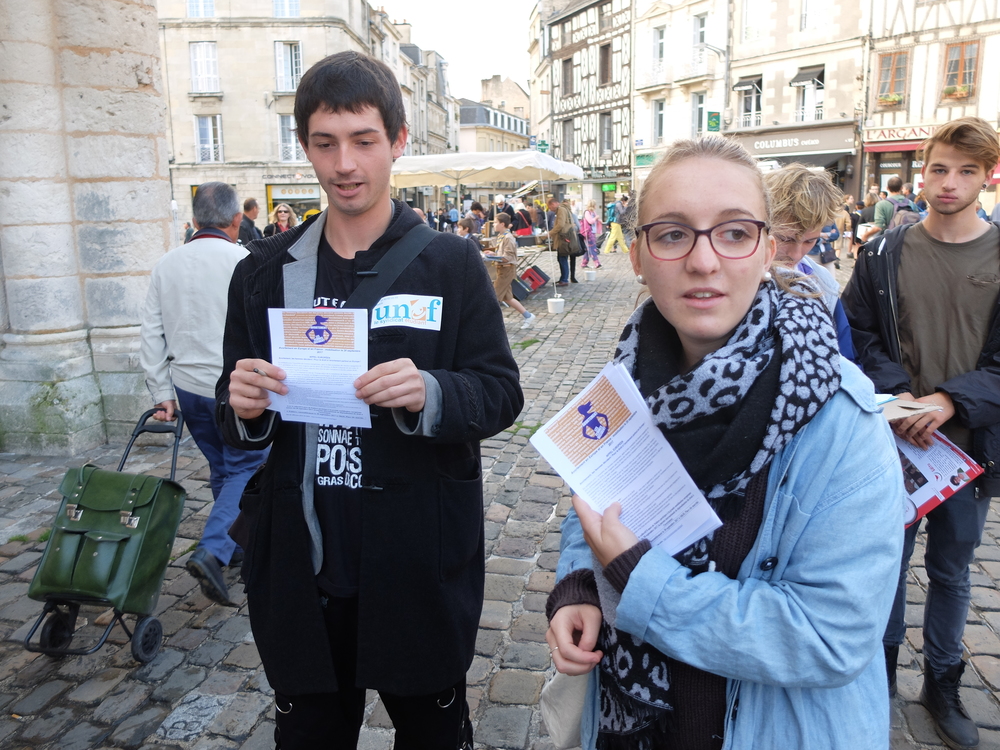 quelques jeunes étaient présent-es (MJCF, UNEF) et ont participé à la distribution des tracts (ci-dessous) et à la récolte de signature de la pétition qu’on peut signer en ligne ICI