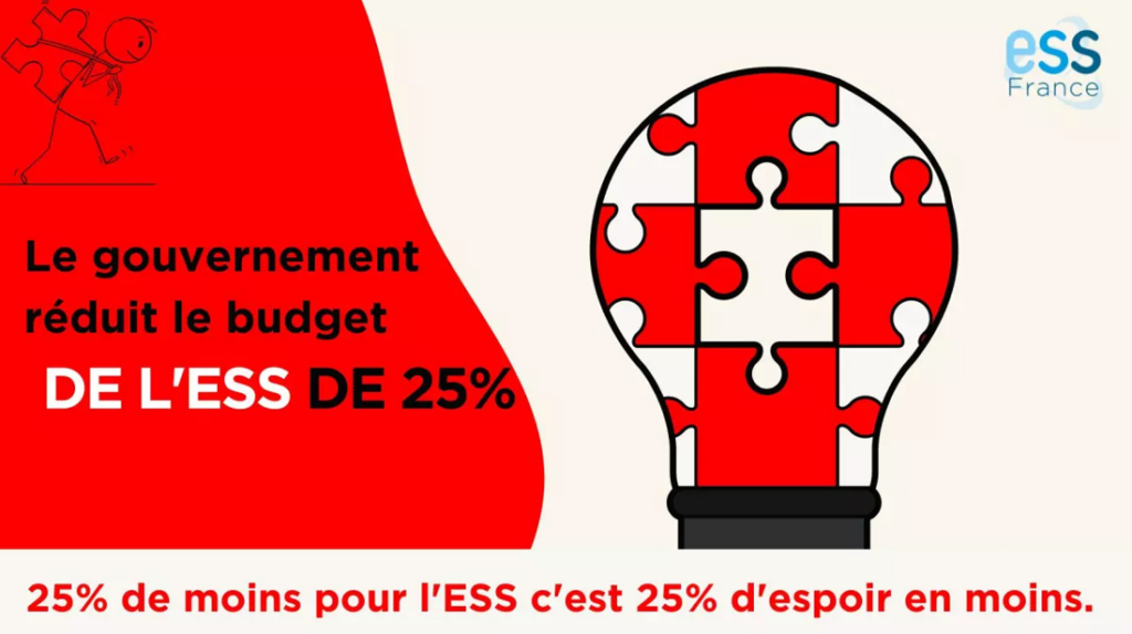 – 25% de baisse pour l’ESS, c’est fragiliser, voire faire disparaître, des organisations de l’ESS déjà en difficultés à cause des plans de rigueur économiques qu’elles subissent depuis plusieurs mois et années. Cette baisse des crédits alloués à l’ESS va se cumuler avec la baisse des dotations aux collectivités locales, premières partenaires des structures de l’ESS sur les territoires, par le biais notamment de conventions ou de marchés publics, produisant ainsi des effets délétères pour l’ESS.