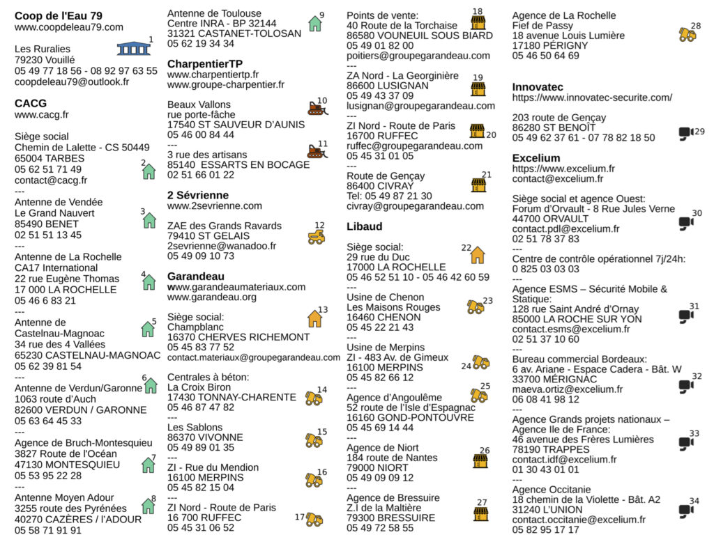 Il est prévu ce vendredi 27 octobre, une campagne d’appels téléphoniques auprès des standards des entreprises impliquées dans la construction de la bassine de Sainte-Soline. Chacun pourra participer à contacter les entreprises qu’il souhaite pour leur exprimer son mécontentement. Vous trouverez ci-dessous le texte qui accompagne les cartes localisant les entreprises et qui seront relayées sur nos réseaux sociaux (Les Soulèvements de la terre et Bassines Non Merci).