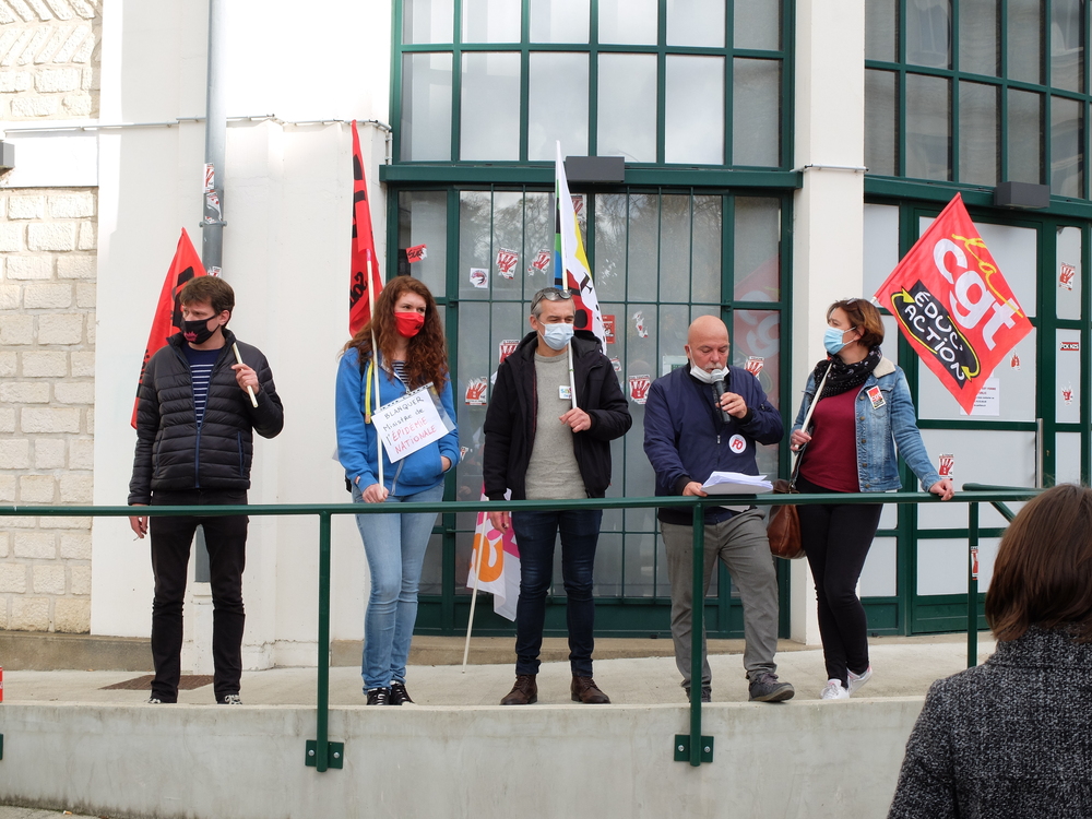 Une des prises de parole a posé la question de l’absence coupable des chef-es d’établissement et des cadres du Rectorat à ce rassemblement : jusqu’où obéiront-elles/ils à une politique mortifère ? Jusqu’où cautionneront-elles/ils de mettre en danger la population par leur soumission au ministre ?