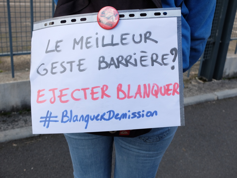 Bien trop peu de monde donc alors que la communication du ministre Blanquer cache une incompétence mortifère qui renvoie au local et aux seuls lycées le soin de lutter contre le COVID.