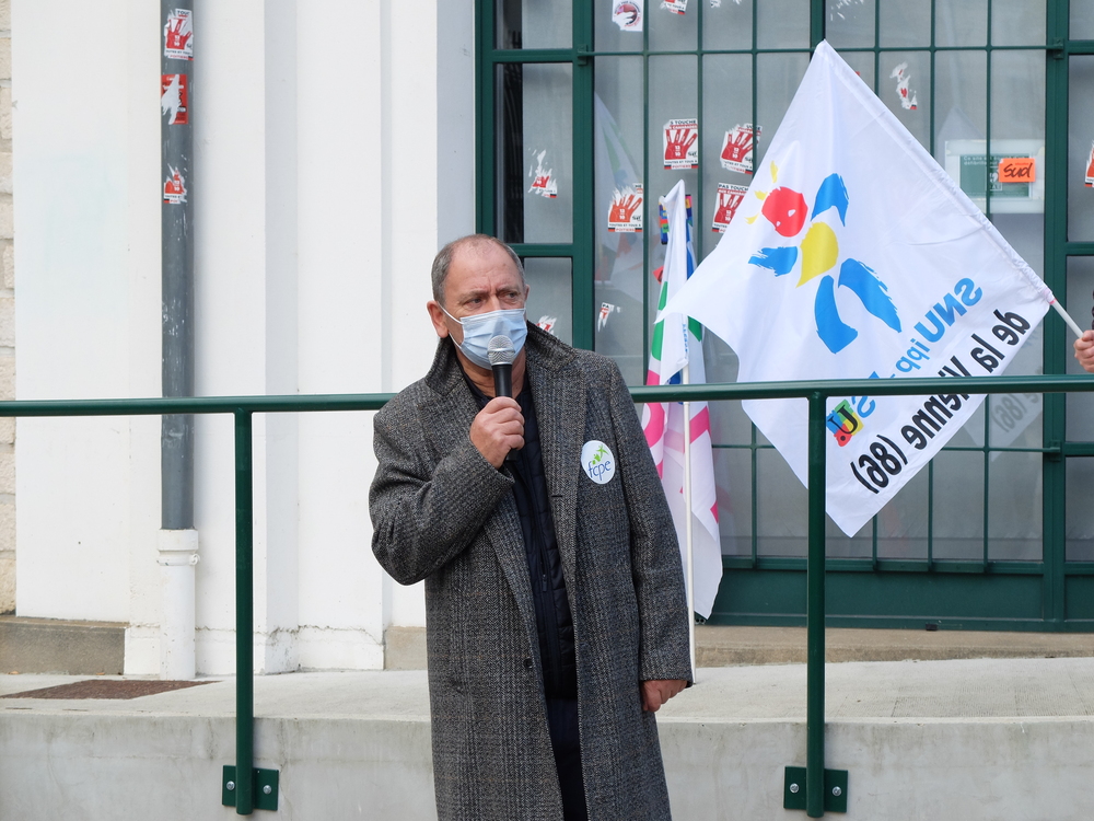 Un peu moins de 200 personnes se sont retrouvées à Poitiers devant le Rectorat à l’appel de l’intersyndicale et de la Fédération des Conseils des Parents d’élèves (FCPE) pour dénoncer des protocoles sanitaires bâclés au service de la seule économie.