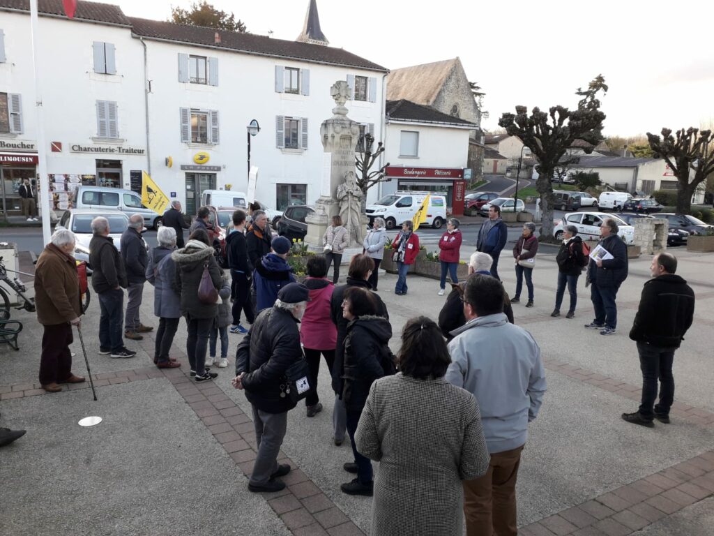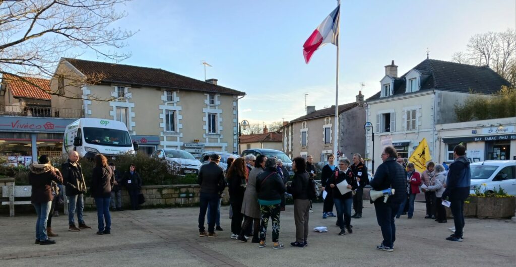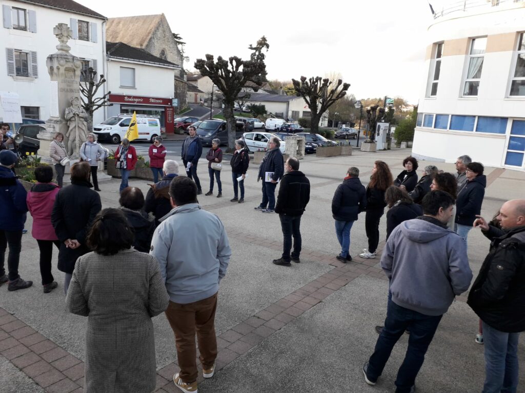 Une cinquantaine de personnes s’étaient déplacées mardi 21 mars à 18h sur la place de la mairie à Smarves pour manifester contre la réforme des retraites