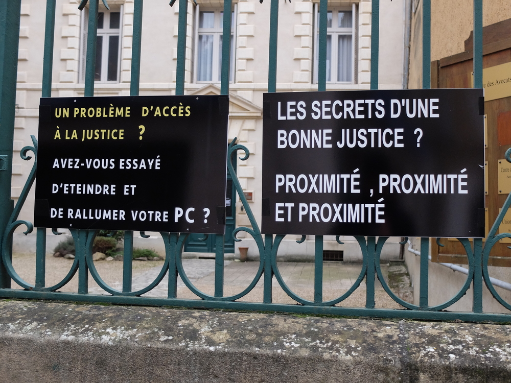 Il suffit de lire les affiches apposées sur la grille de la Maison des avocats de Poitiers :