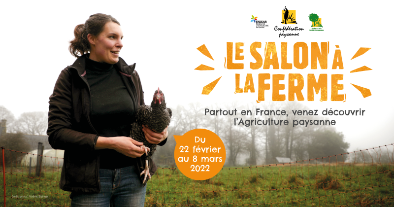 « Après une première édition réussie en 2021, le Salon à la ferme revient partout en France, organisé par la Confédération paysanne, la FADEAR et les Ami.es de la Confédération paysanne.