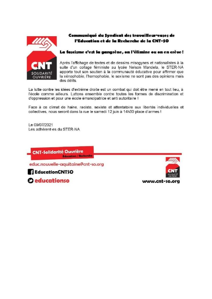 Communiqué de la CNT-so : ( publié sur web 86 dès le 8 juin )