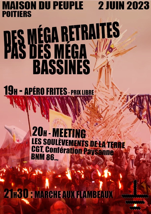 20h : MEETING des Soulèvements de la Terre avec la CGT86, la Confédération Paysanne86, Bassines Non Merci, …