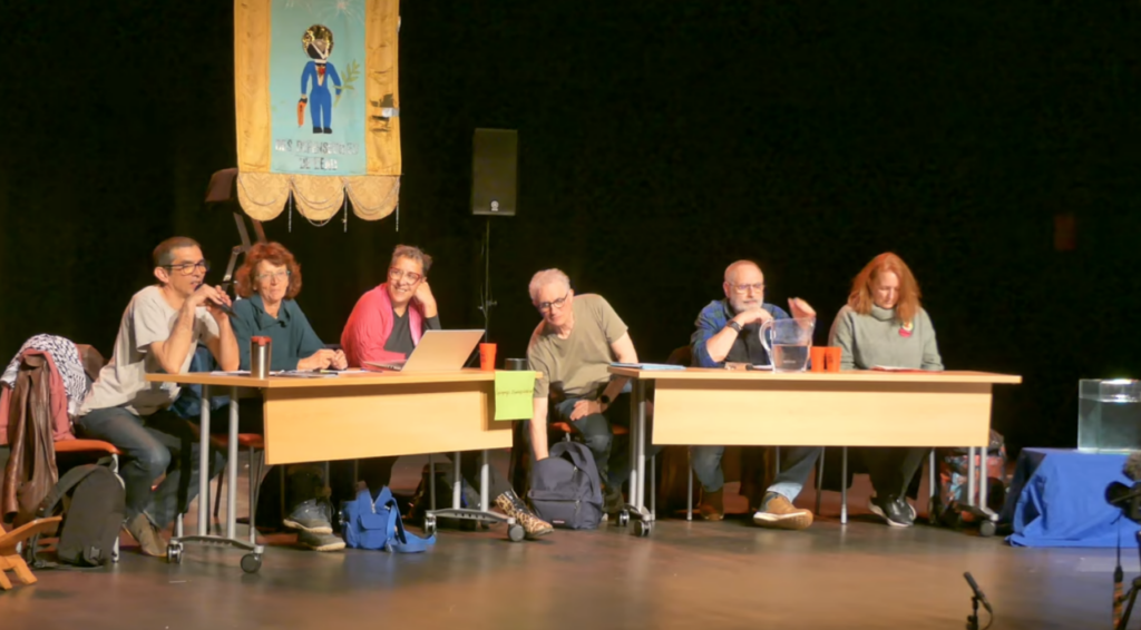 Dans le cadre des 3 ans après Sainte-Soline, nous avons organisé cette table ronde animée par Jérémie (BNM86), en présence de Françoise Graziani et Jean-Pierre Duteuil (les parents de Serge), Louis-Marie Sabourin et Thierry Leblan Falzone (Observateurs LDH), Najet (Legal Team), Murielle Guilbert (co-déléguée nationale de Solidaires), Julien Le Guet (co-porte parole du collectif Bassines Non Merci)