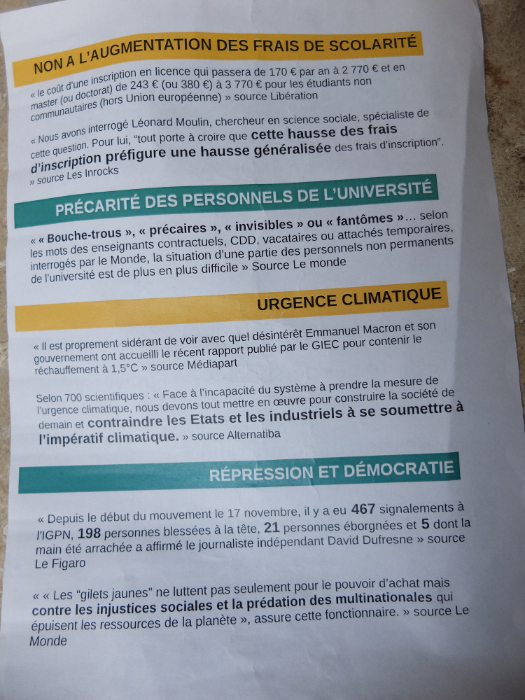 Tract distribué aujourd’hui devant l’Hôtel Fumé fermé