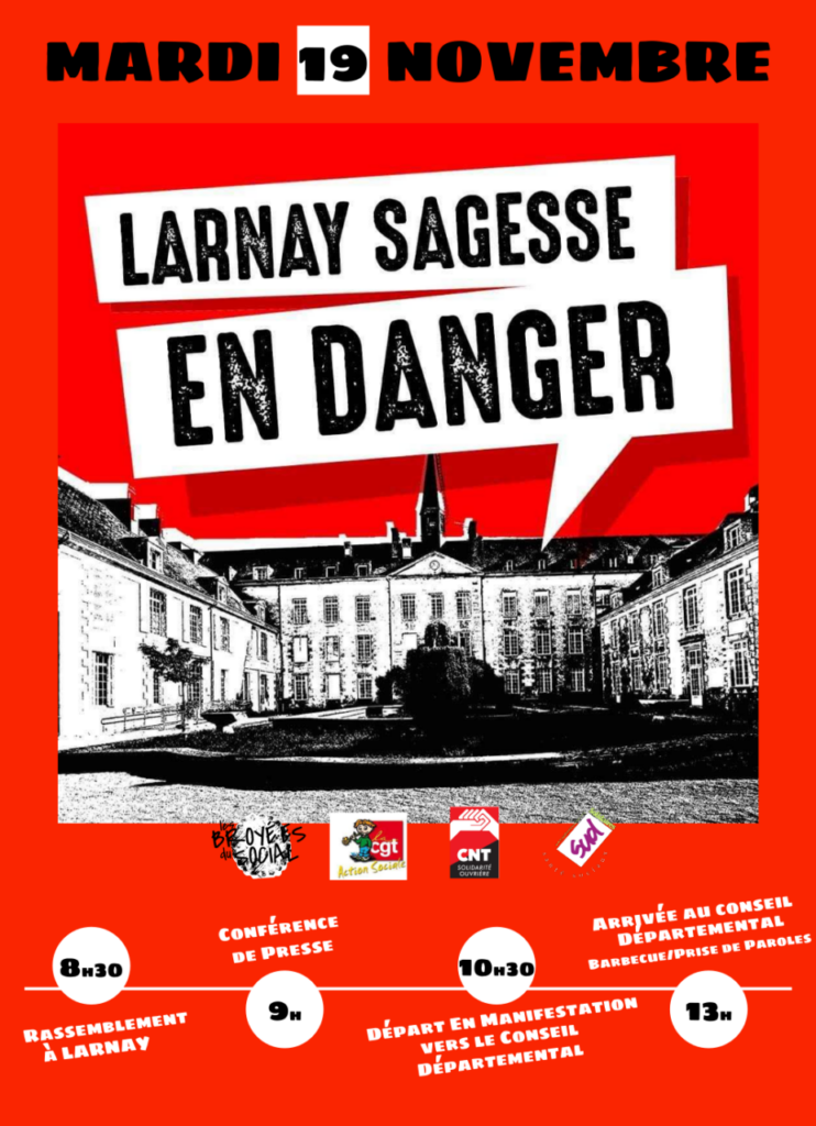 📢 L’intersyndicale départementale appelle tous les salariés du secteur à soutenir massivement la journée de grève et de manifestation organisée par le collectif des salariés de Larnay Sagesse le Mardi 19 novembre.