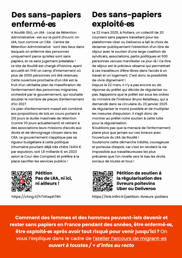 [tract] « Sans-Papiers enfermés ou exploités : stop ! » Poitiers le 24 juin.
