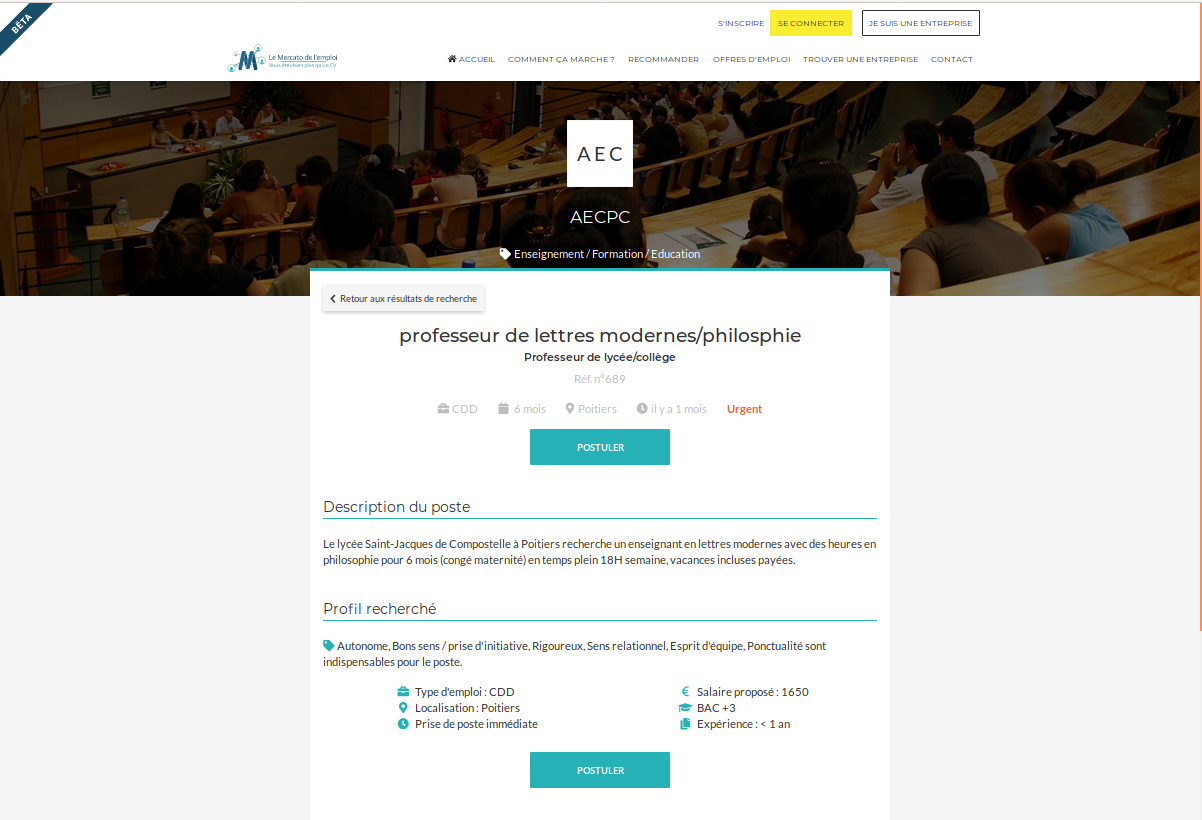 Notons la fraîcheur de la marchandise, son humeur, ses sentiments : prof-e de philo dans un lycée privé de Poitiers