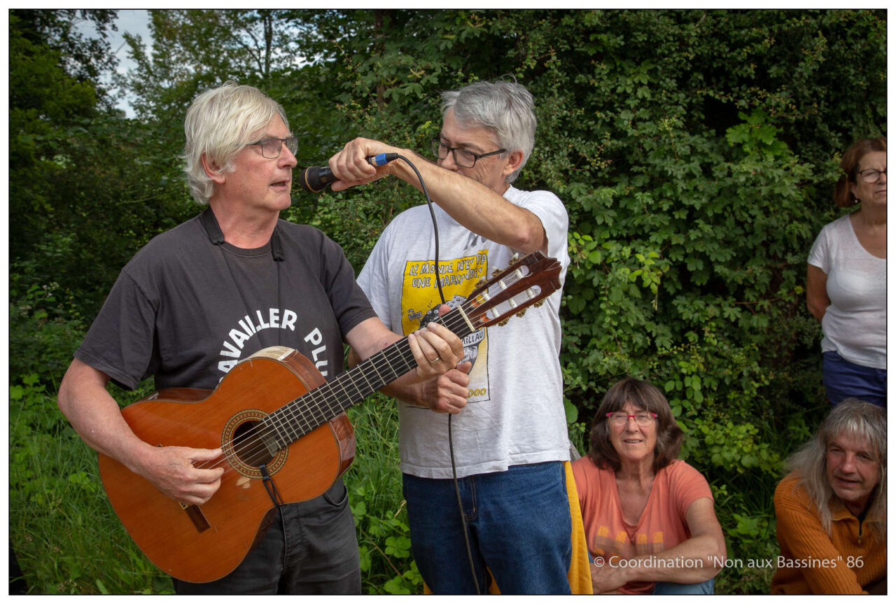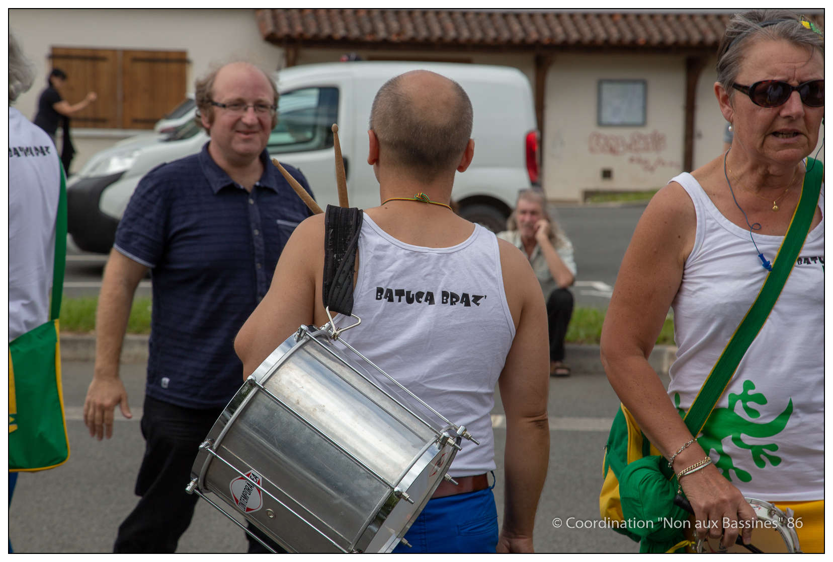 Sur place, autres artistes engagé-es, celles et ceux de la Batuca Braz qui nous ont accompagné pendant toute la loooongue manifestation jusqu’à une des bassines des Roches Prémaries Andillé. Un acte de solidarité fort, musical et … physique.