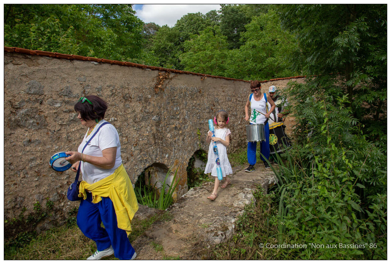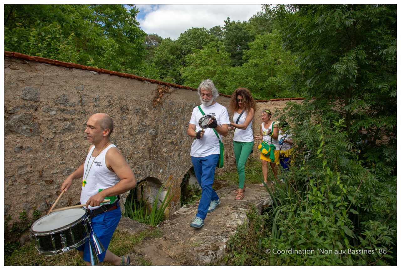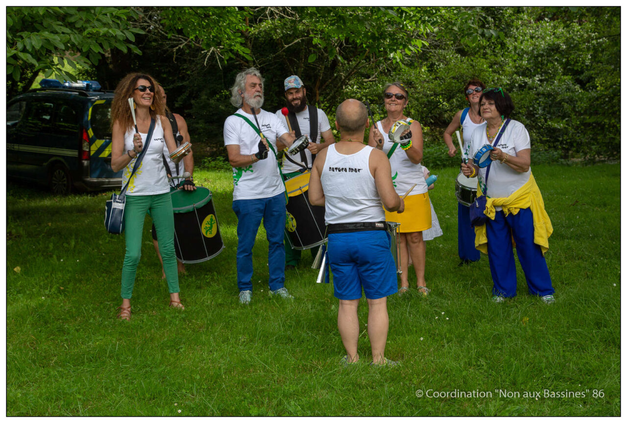 Sur place, autres artistes engagé-es, celles et ceux de la Batuca Braz qui nous ont accompagné pendant toute la loooongue manifestation jusqu’à une des bassines des Roches Prémaries Andillé. Un acte de solidarité fort, musical et … physique.